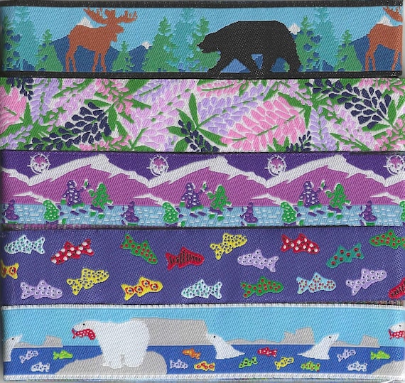 NATIVE AMERICAN E-10-C Jacquard Ribbon Poly Trim 7/8" wide (22mm) Black w/Blue Tlingit Design