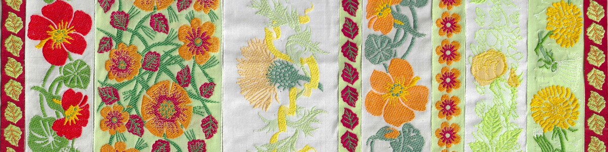 FLORAL D-46-A Jacquard Ribbon Poly Trim 3/4" wide (20mm) Bright, Colorful Happy Daisies