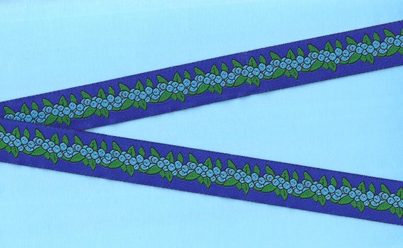 KAFKA G-13/08 Jacquard Ribbon Organic Cotton Trim 1-1/4" wide (32mm) Navy Blue w/Red Mod Flowers