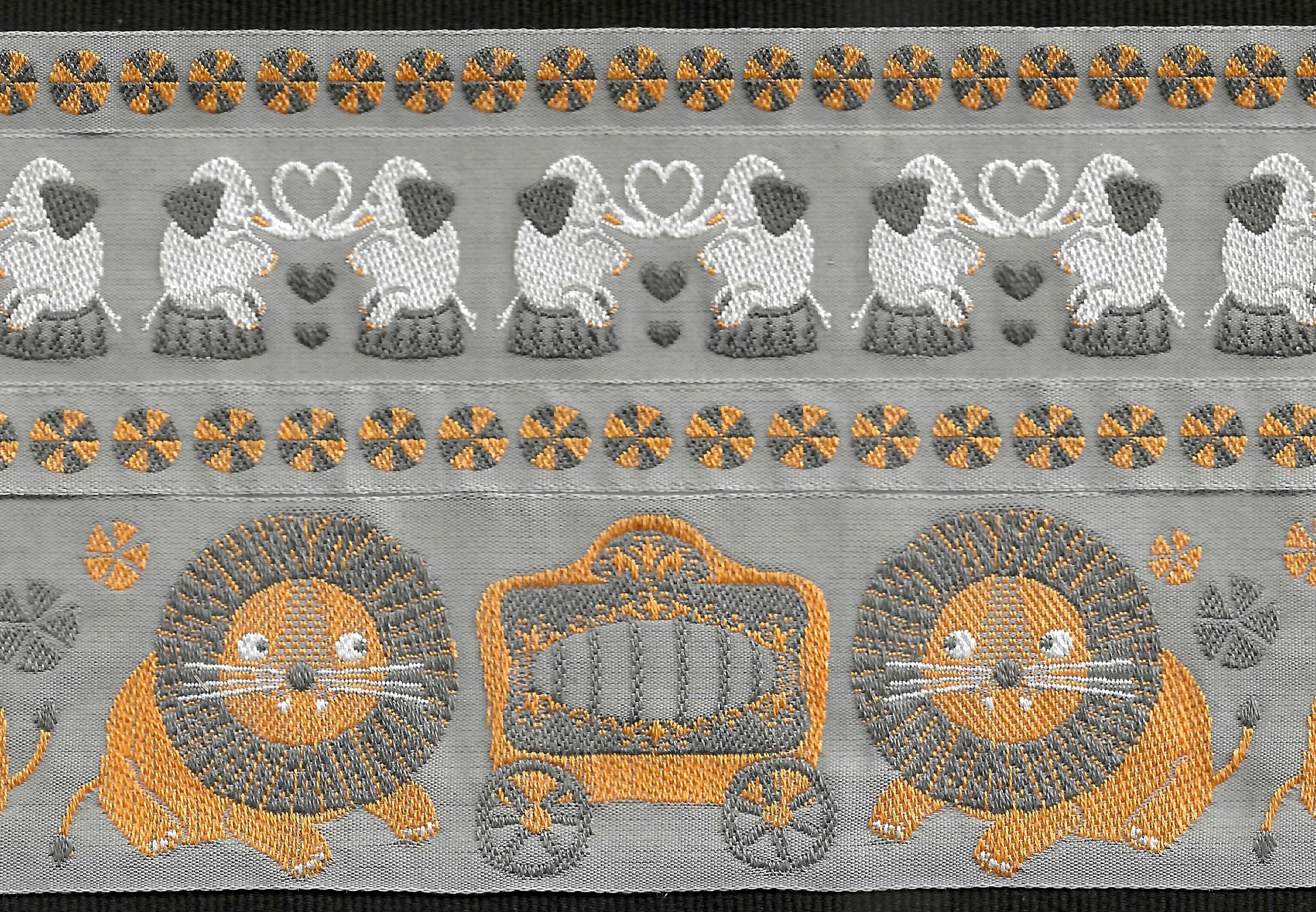 From Germany, Kafka Band Weaving Mills have made jacquard ribbons for antique wood looms for over 100 years. Only several meters are made per hour with this process.
