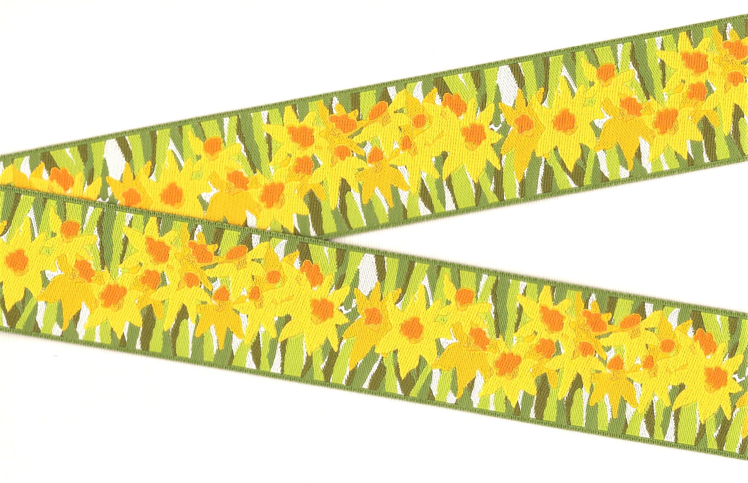 1-1/2" wide (38mm) poly White w/Yellow & Orange Daffodils, Green leaves,