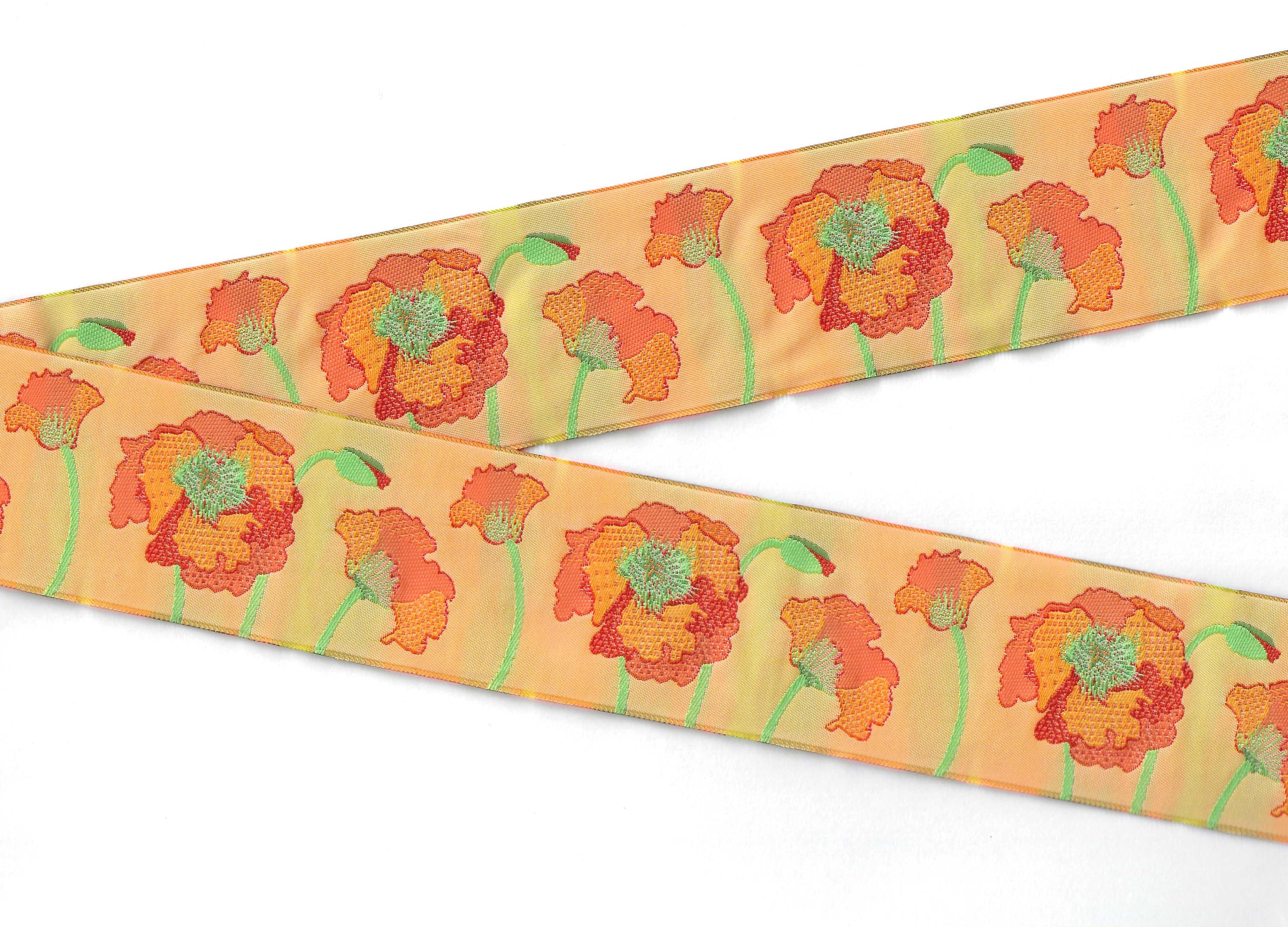 2" wide (50mm) poly Orange w/Bright Orange Poppies,