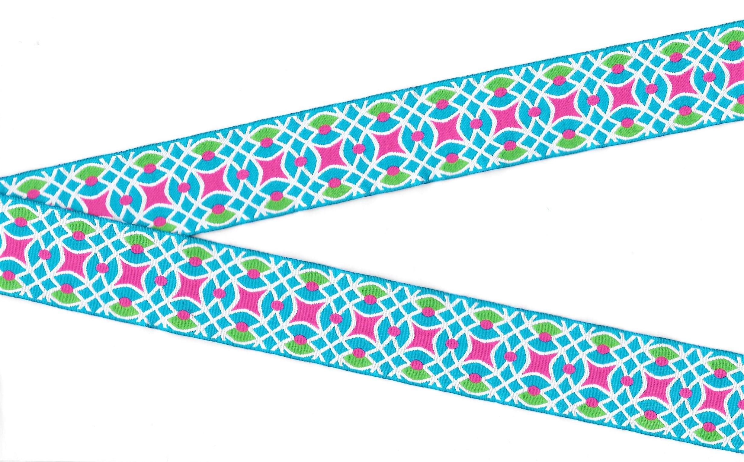 Jacquard Ribbon Trim - named for the man who invented the loom on which this trim is made - Joseph Marie Jacquard (France 1732-1854). Jacquard trims nowadays are woven using many different materials including rayon, polyester, metallic, cotton, blends and on rare occasion silk. Unless otherwise noted these trims are all cold water machine wash/dry and are colorfast. Please use your own judgment.