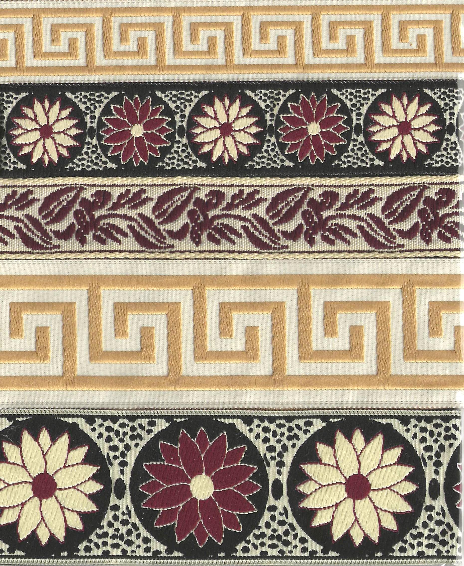 Jacquard Ribbon Trim - named for the man who invented the loom which this trim is woven on - Joseph Marie Jacquard (France 1732-1854). Jacquard trims nowadays are woven using many different materials including rayon, polyester, metallic, cotton, blends and on rare occasion silk. Unless otherwise noted these trims are all cold water machine wash/dry and are colorfast. Please use your own judgment.