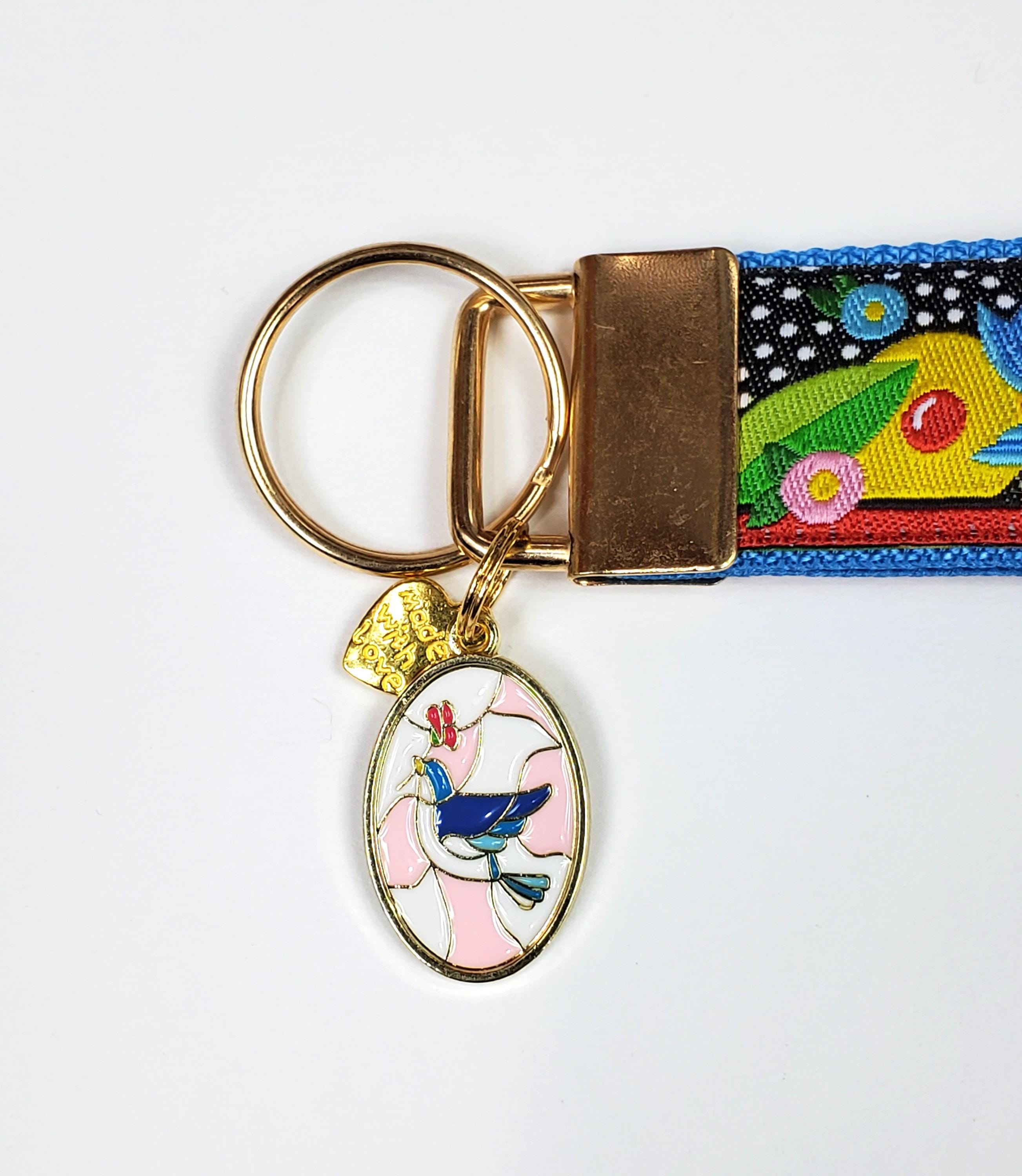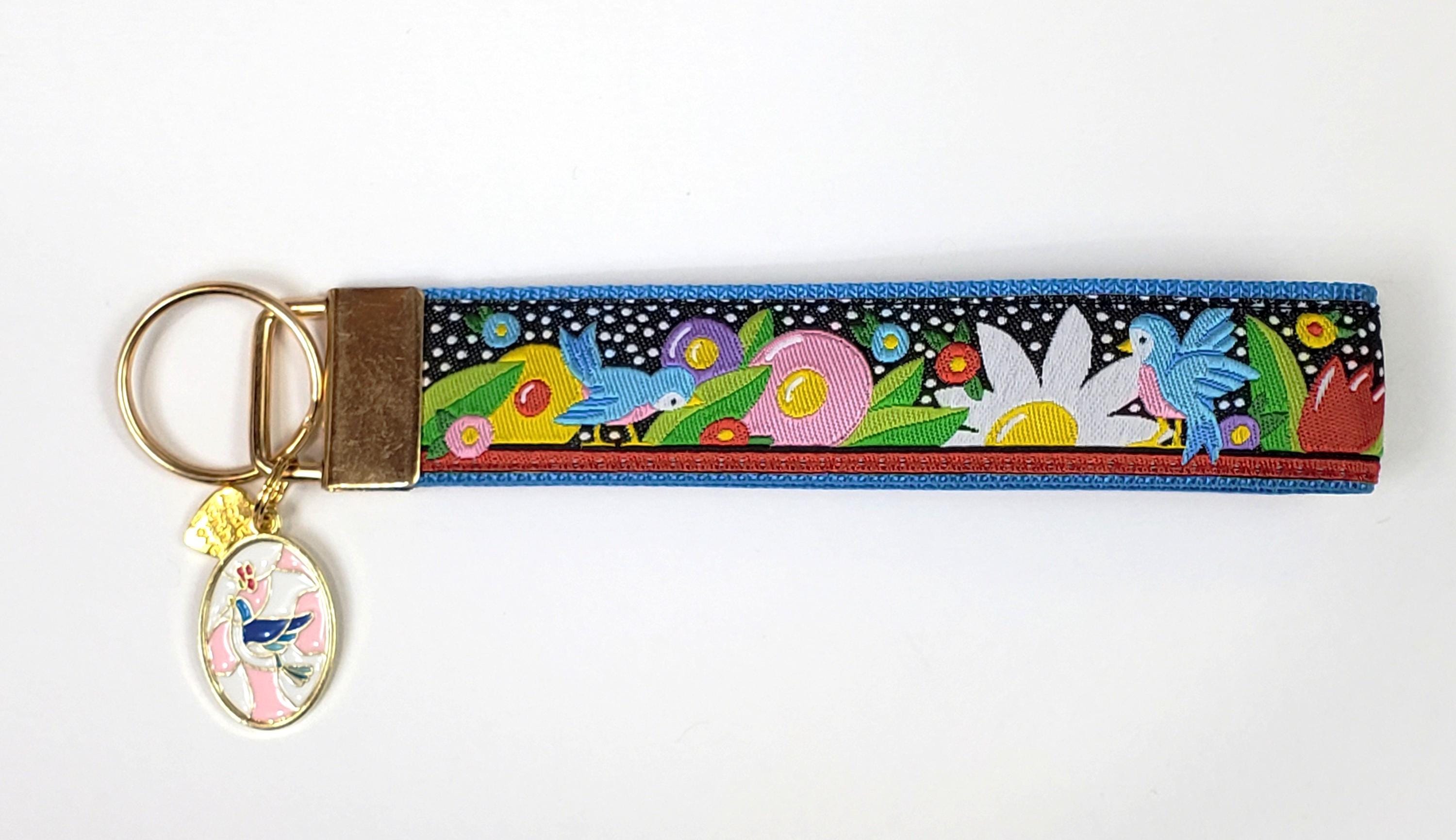 Handmade key fob with charms - my key fobs are made using jacquard woven ribbons and nylon web.