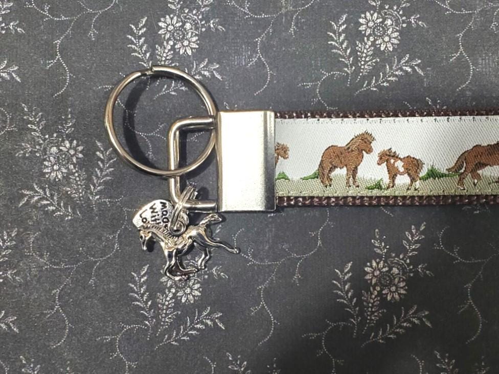 Handmade key fob with charms - my key fobs are made using jacquard woven ribbons and nylon web.