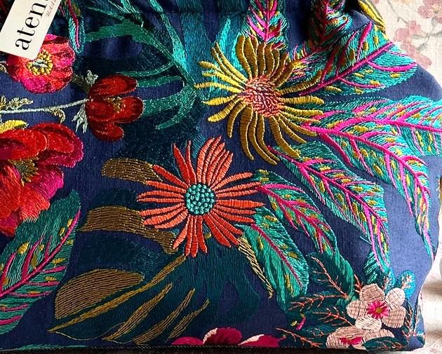Gorgeous bags! I met this company at the Chicago H&H show in March 2024 and fell in love with their quality, fabrics and the beauty of their craftmanship. I'm pleased to be able to have them in my shop. Stock photos used/encouraged by and with permission from Atenti. Actual pattern layout for the Grand Pouch may differ from the photo.