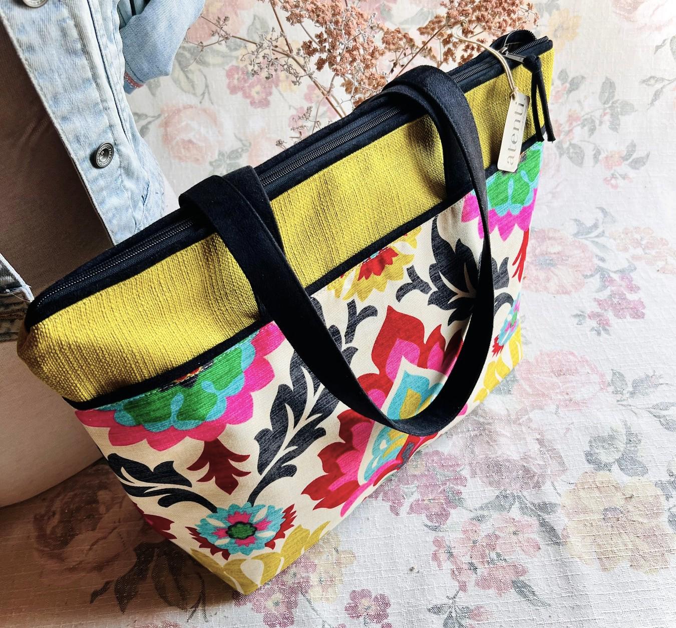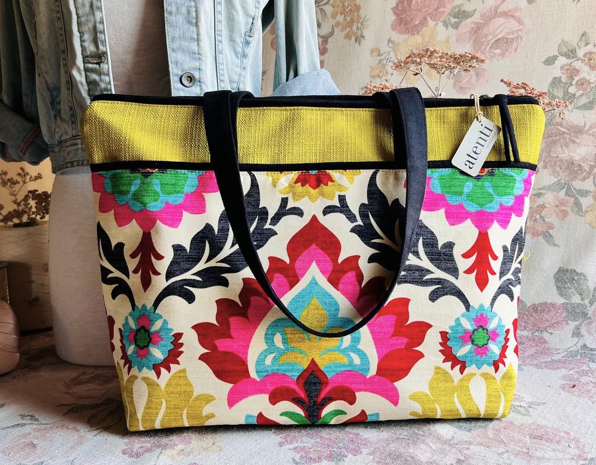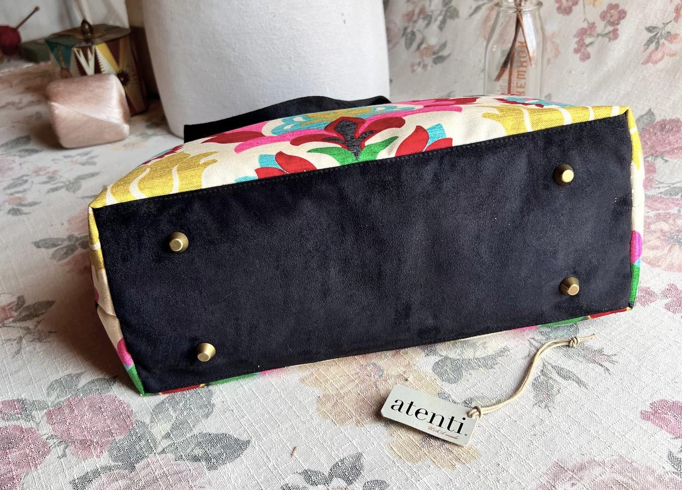 Gorgeous bags! I met this company at the Chicago H&H fabric & Yarn show in March and fell in love with their quality, fabrics and the beauty of their craftmanship. I'm pleased to be able to offer their work in my shop. Stock photos used/encouraged by and with permission from Atenti. This is a photo of the actual bag you are purchasing.