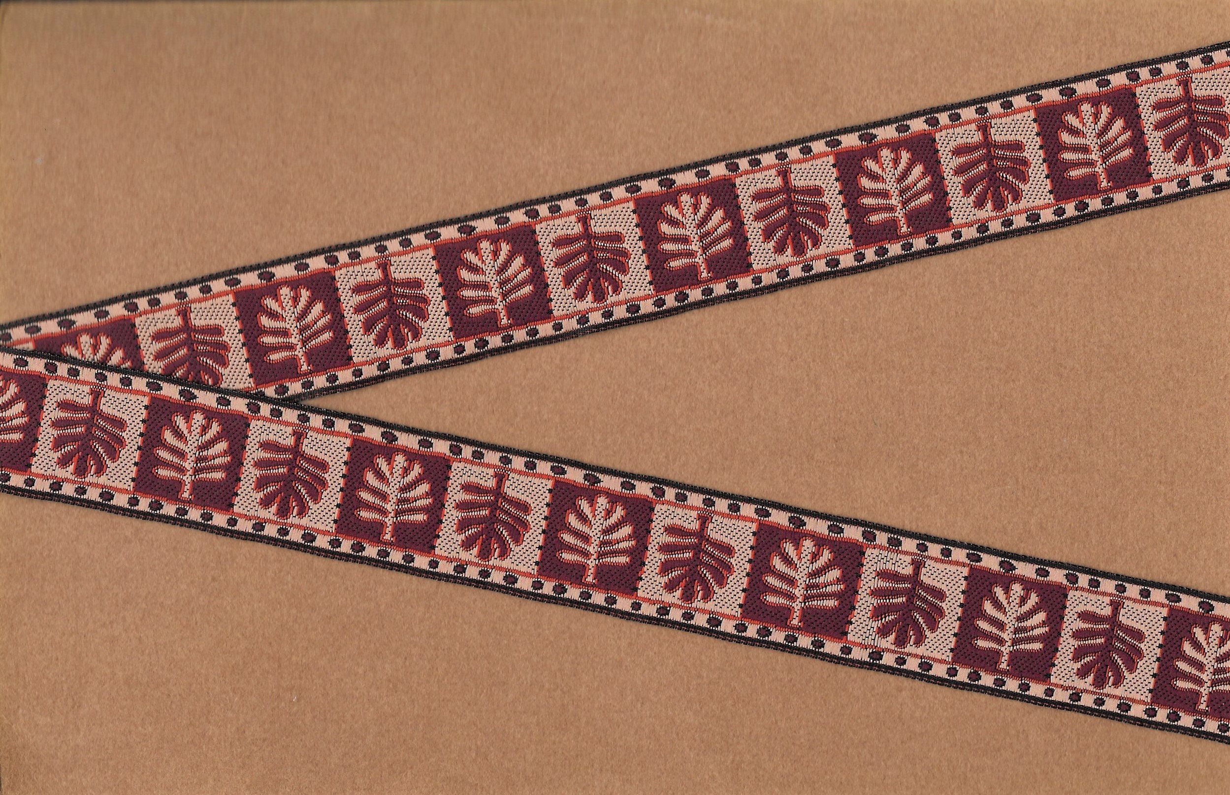 Jacquard Ribbon Trim - named for the man who invented the loom on which this trim is made - Joseph Marie Jacquard (France 1732-1854). Jacquard trims nowadays are woven using many different materials including rayon, polyester, metallic, cotton, blends and on rare occasion silk. Unless otherwise noted these trims are all cold water machine wash/dry and are colorfast. Please use your own judgment.