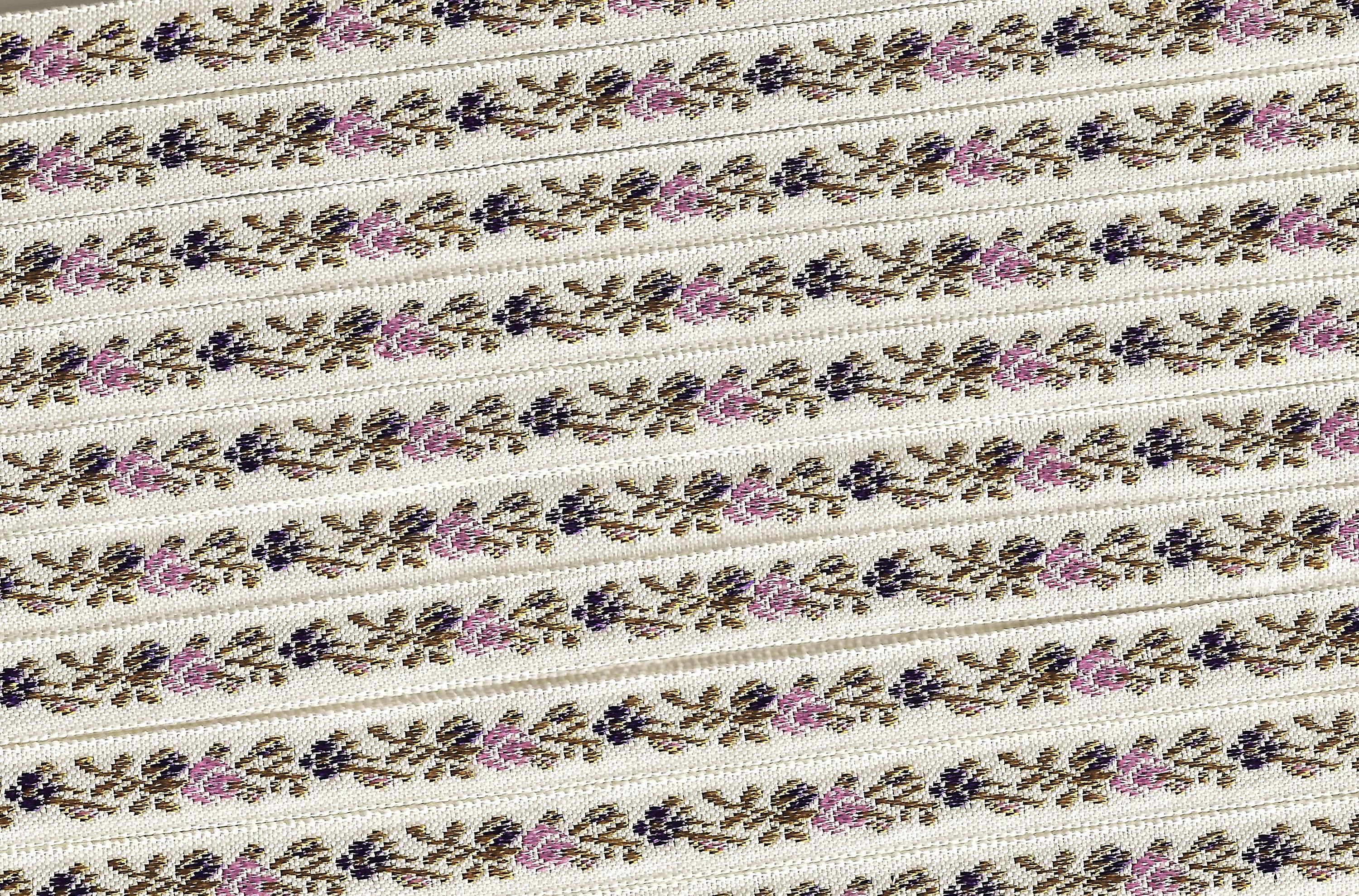 Jacquard Ribbon Trim - named for the man who invented the loom on which this trim is made - Joseph Marie Jacquard (France 1732-1854). Jacquard trims nowadays are woven using many different materials including rayon, polyester, metallic, cotton, blends and on rare occasion silk. Unless otherwise noted these trims are all cold water machine wash/dry and are colorfast. Please use your own judgment.