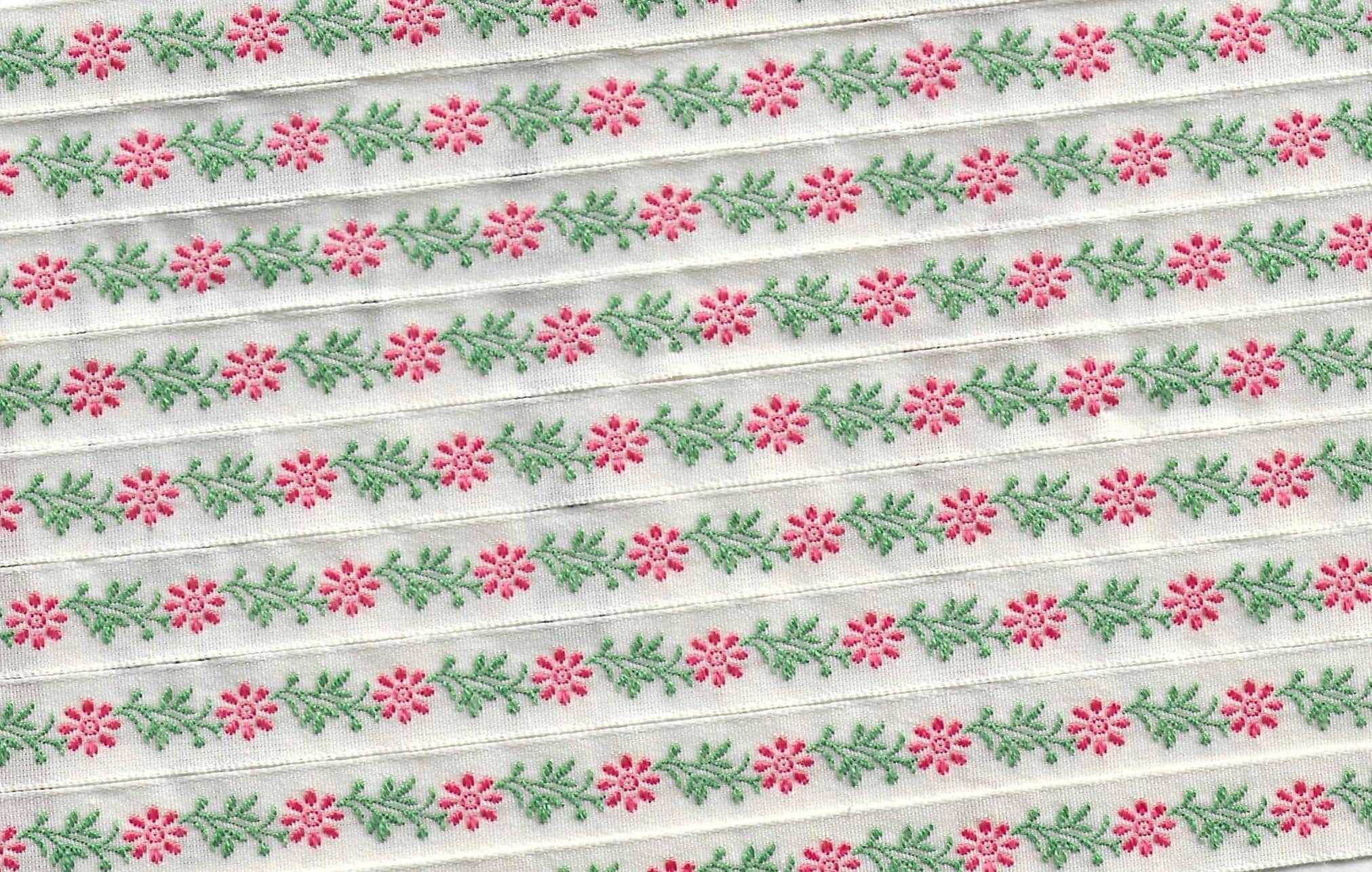 From Germany, Kafka Band Weaving Mills have made jacquard ribbons for antique wood looms for over 100 years. Only several meters are made per hour with this process.
