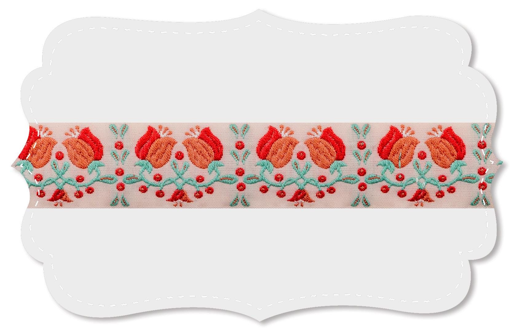 From Germany, Kafka Band Weaving Mills have made jacquard ribbons for antique wood looms for over 100 years. Only several meters are made per hour with this process.