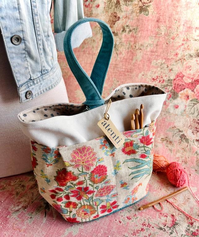 Gorgeous bags! I met this company at the Chicago H&H fabric & Yarn show in March 2024 and fell in love with their quality, fabrics and the beauty of their craftmanship. I'm pleased to be able to offer their work in my shop. Stock photos used/encouraged by and with permission from Atenti.