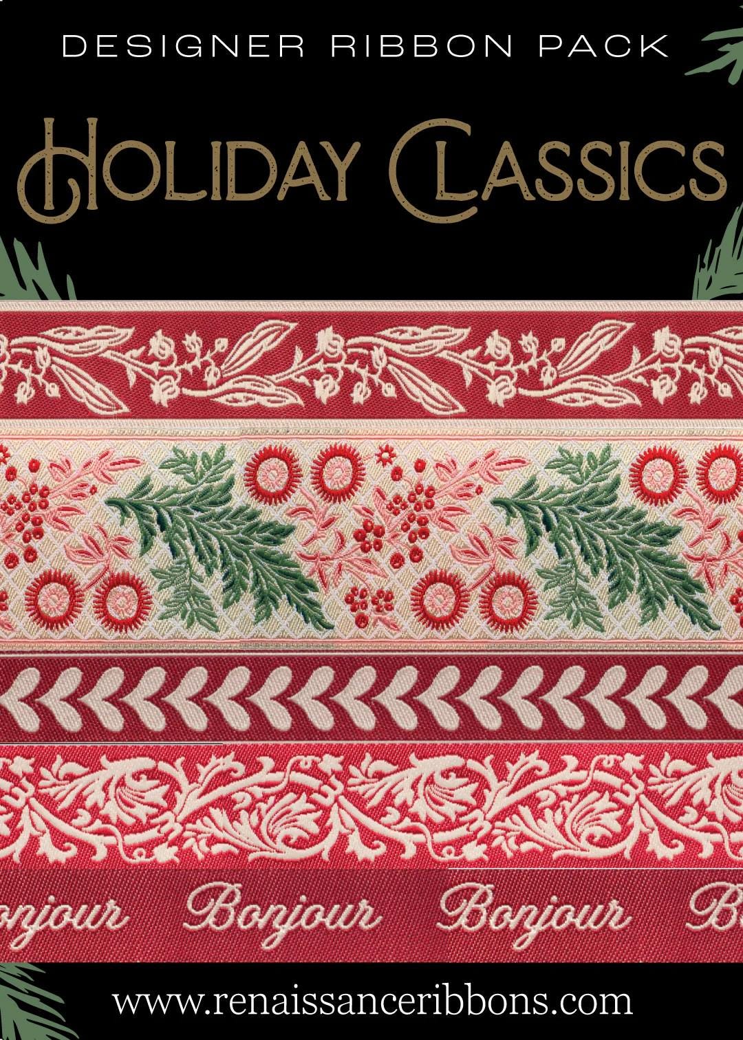 From Renaissance Ribbons comes one of their holiday ribbon packs by FRENCH GENERAL. Discontinued and rare designs,