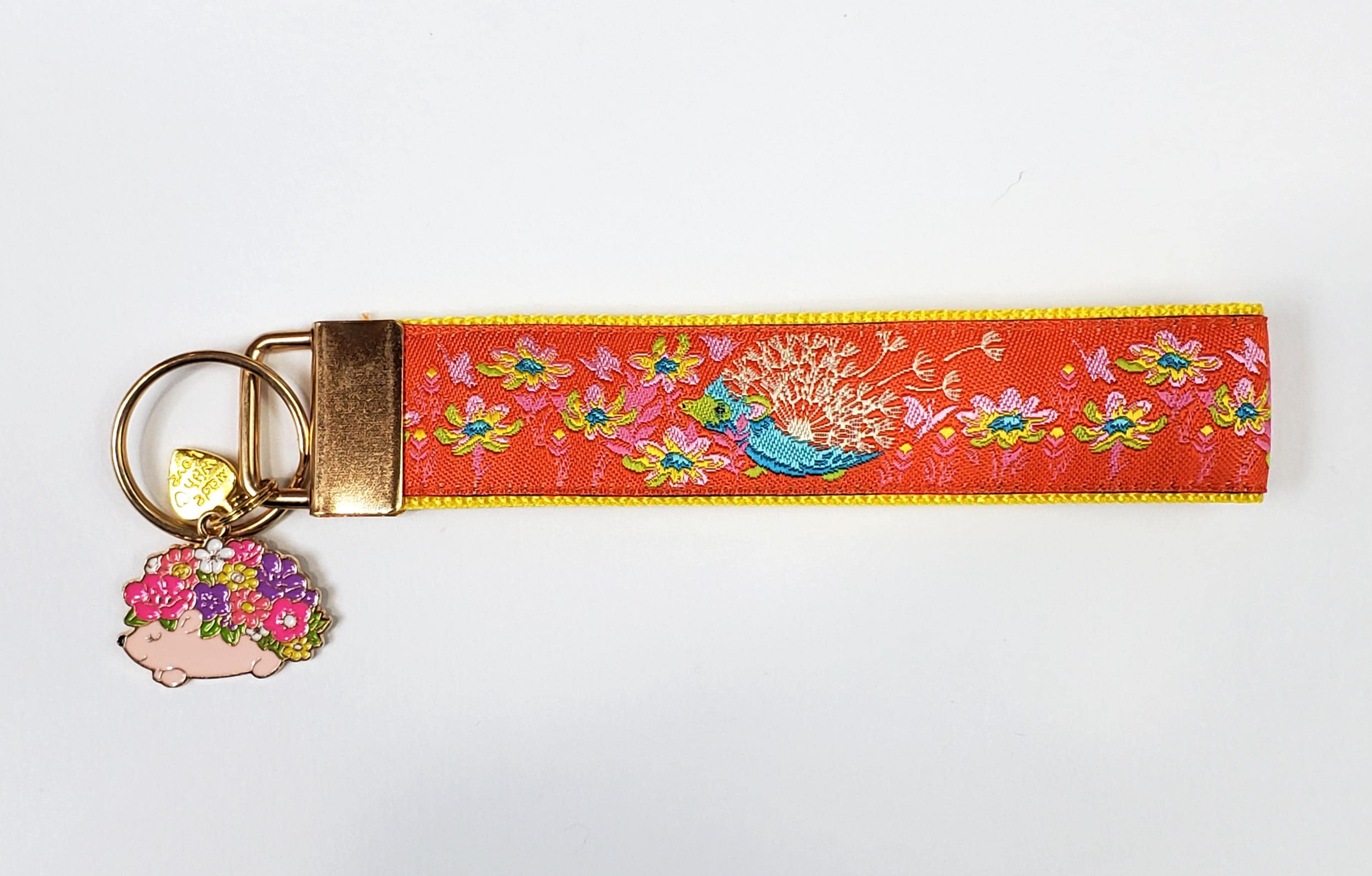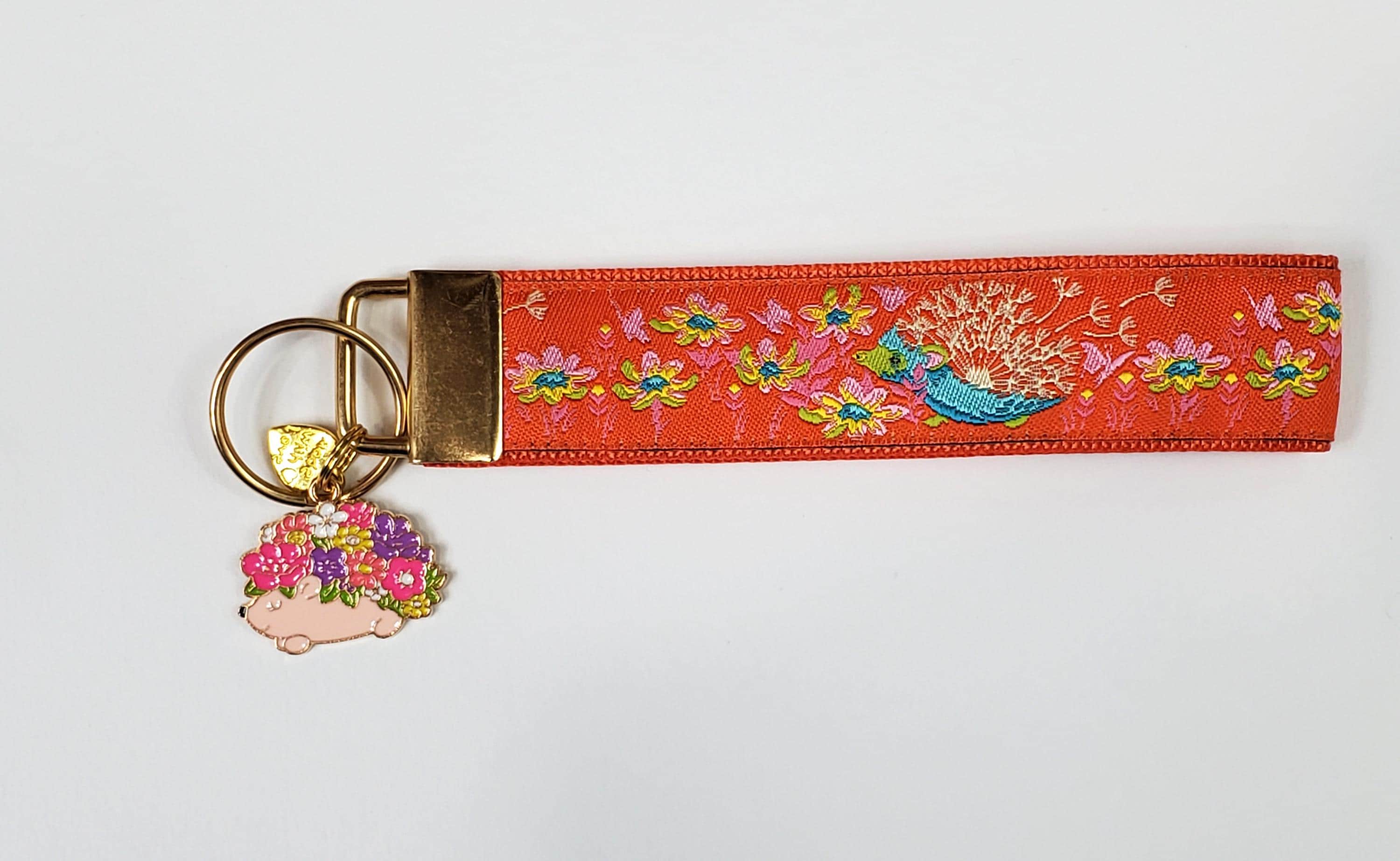 Handmade key fob with charms - my key fobs are made using jacquard woven ribbons and nylon web.