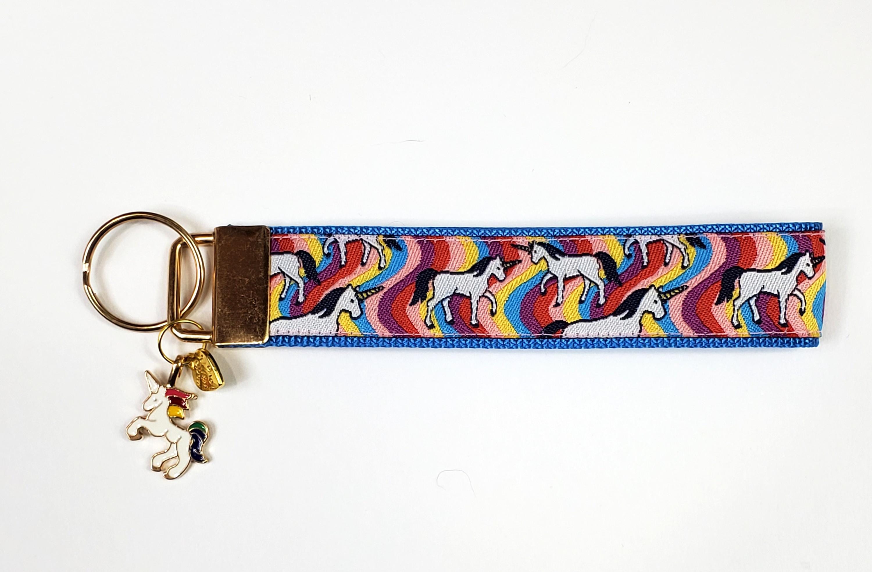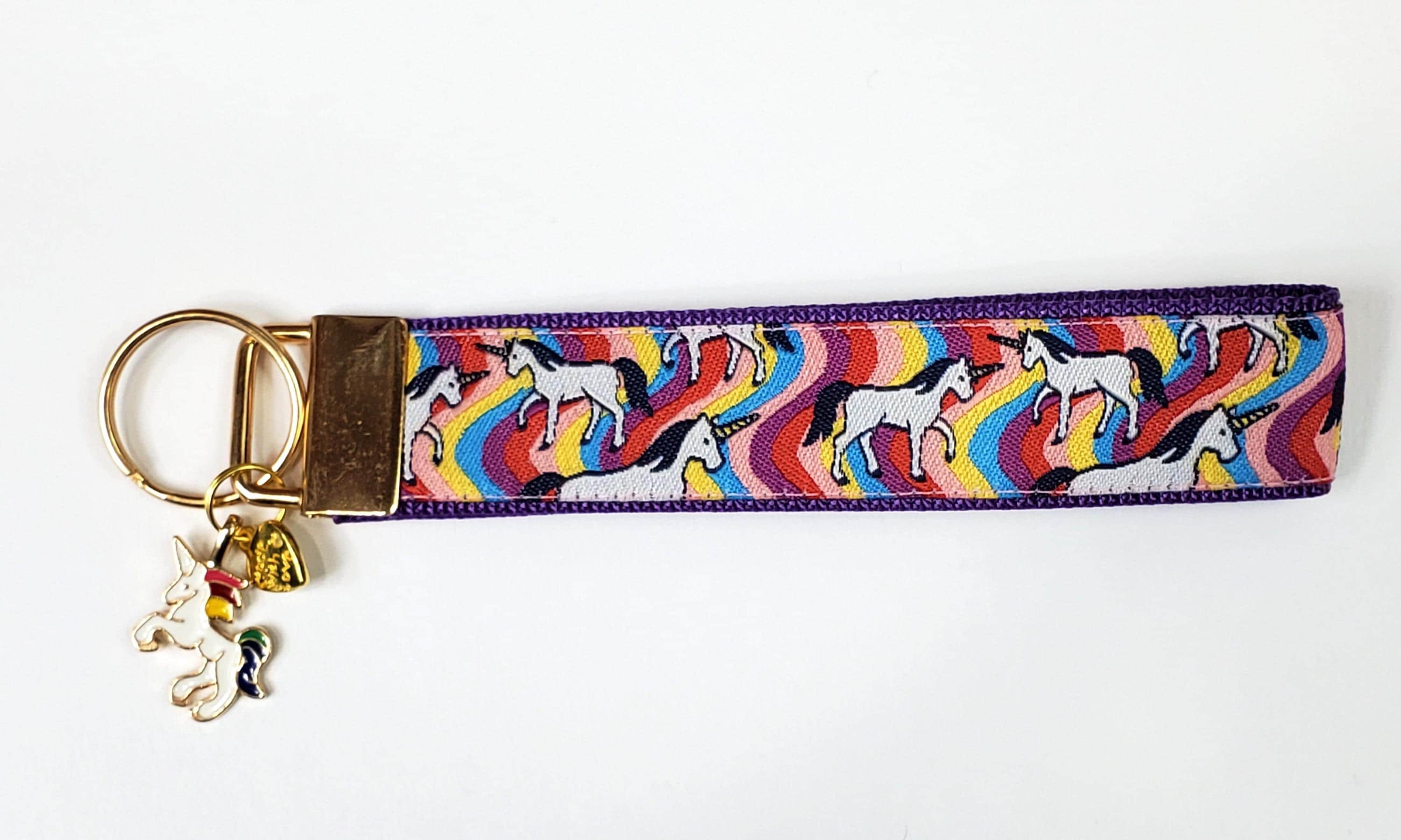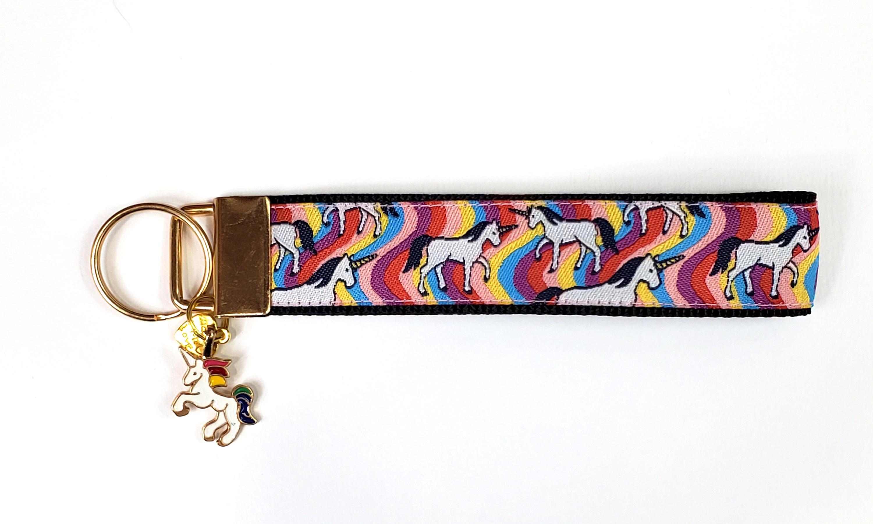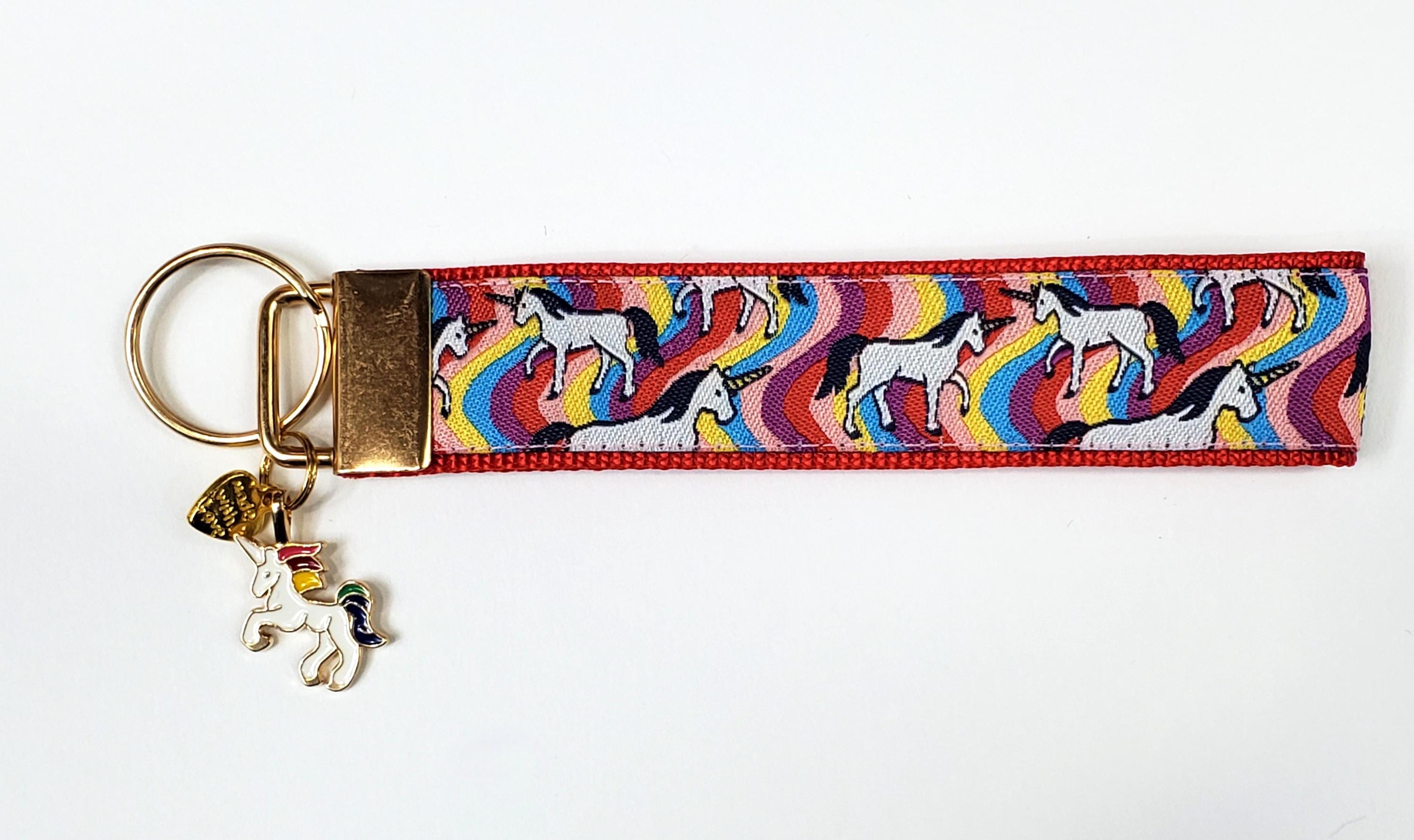 Handmade key fob with charms - my key fobs are made using jacquard woven ribbons and nylon web.