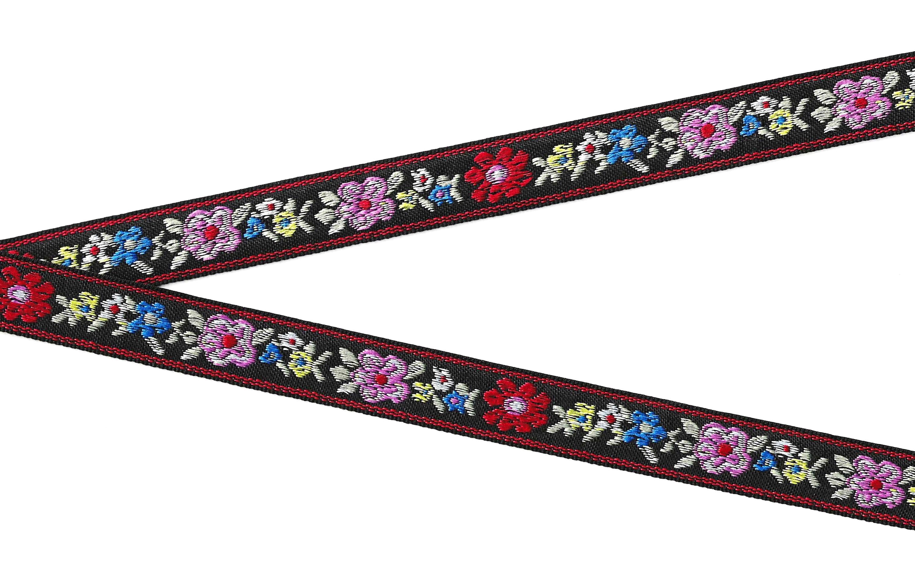Jacquard Ribbon Trim - named for the man who invented the loom on which this trim is made - Joseph Marie Jacquard (France 1732-1854). Jacquard trims nowadays are woven using many different materials including rayon, polyester, metallic, cotton, blends and on rare occasion silk. Unless otherwise noted these trims are all cold water machine wash/dry and are colorfast. Please use your own judgment.