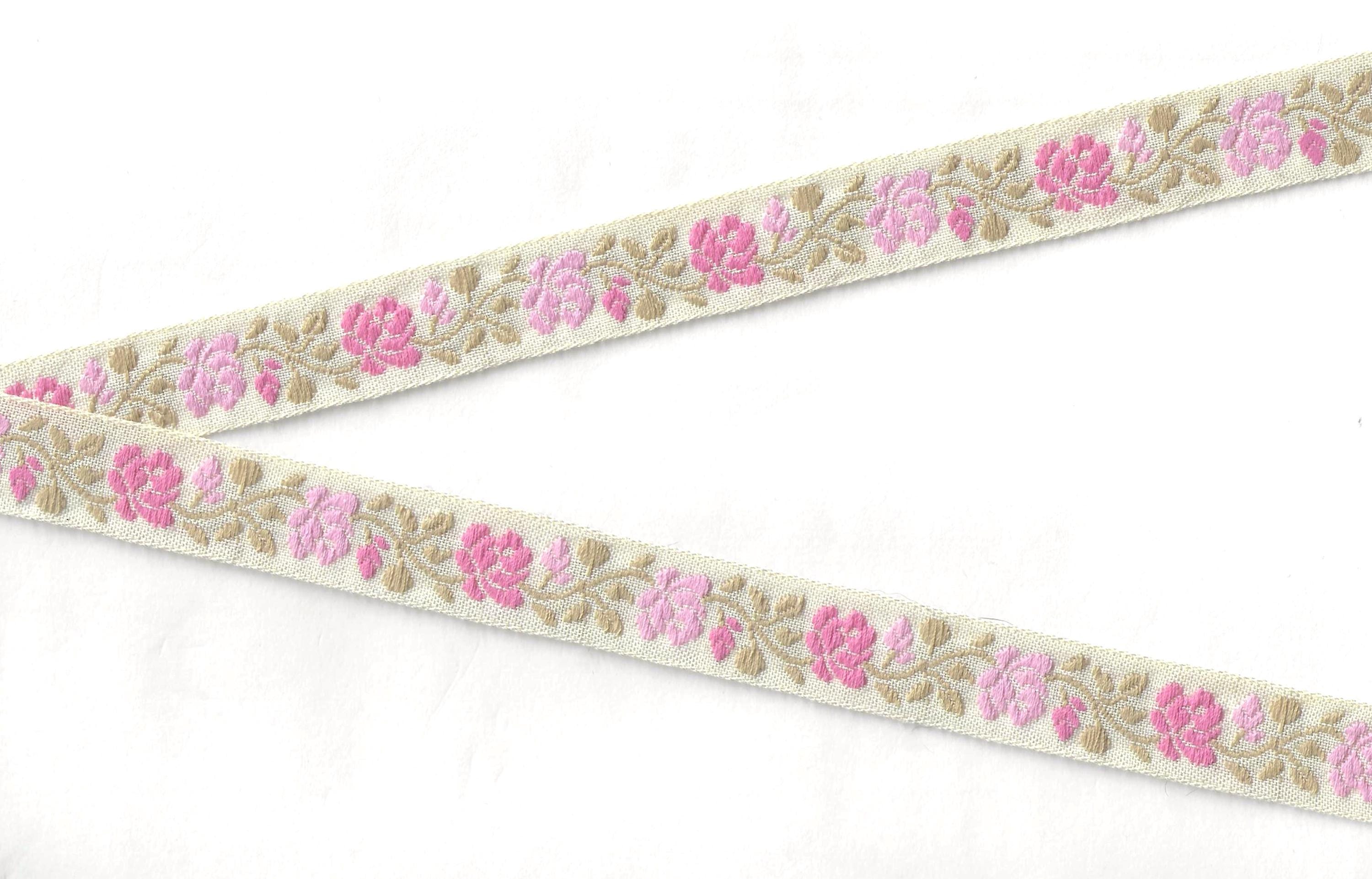 Jacquard Ribbon Trim - named for the man who invented the loom on which this trim is made - Joseph Marie Jacquard (France 1732-1854). Jacquard trims nowadays are woven using many different materials including rayon, polyester, metallic, cotton, blends and on rare occasion silk. Unless otherwise noted these trims are all cold water machine wash/dry and are colorfast. Please use your own judgment.