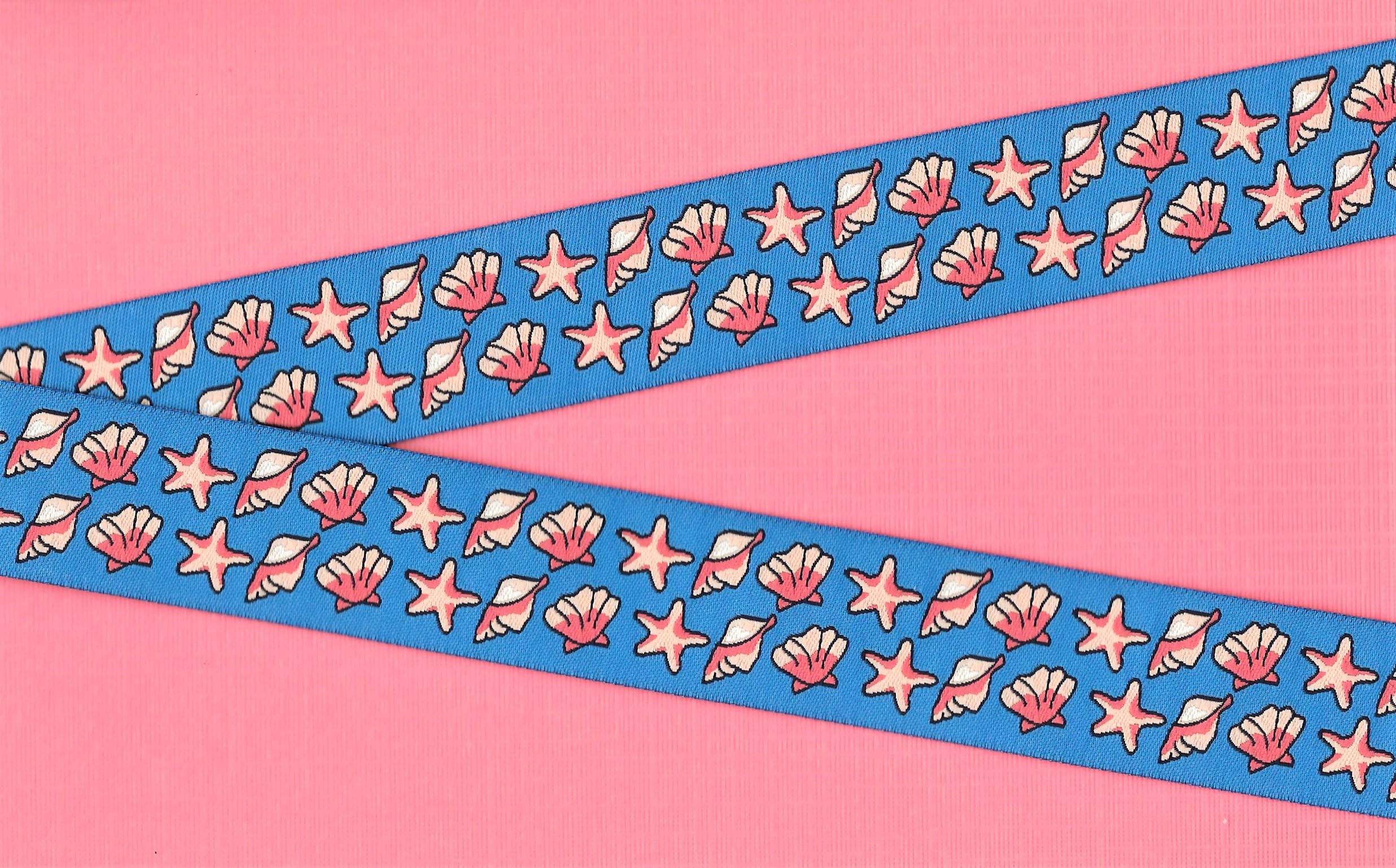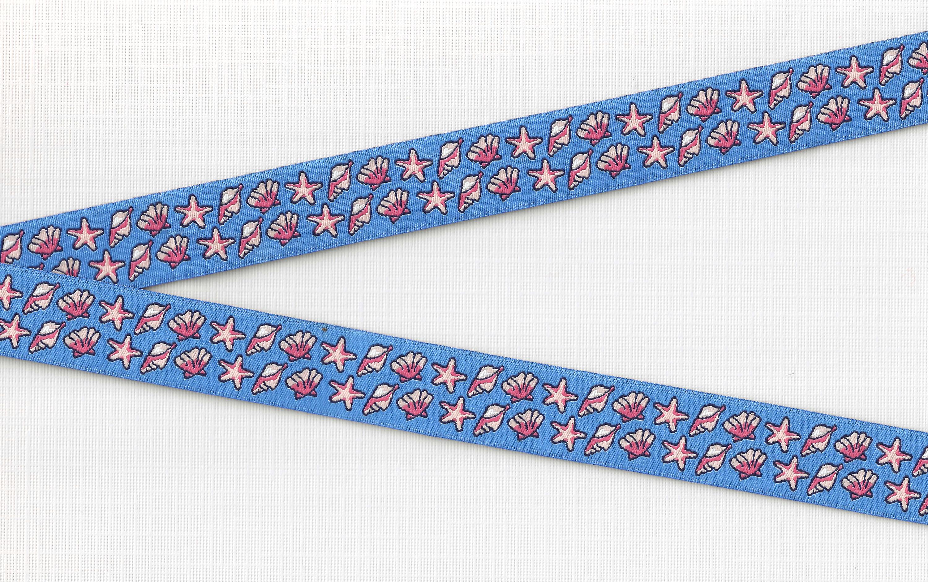7/8" wide (22mm) Blue w/Coral Pink Seashells