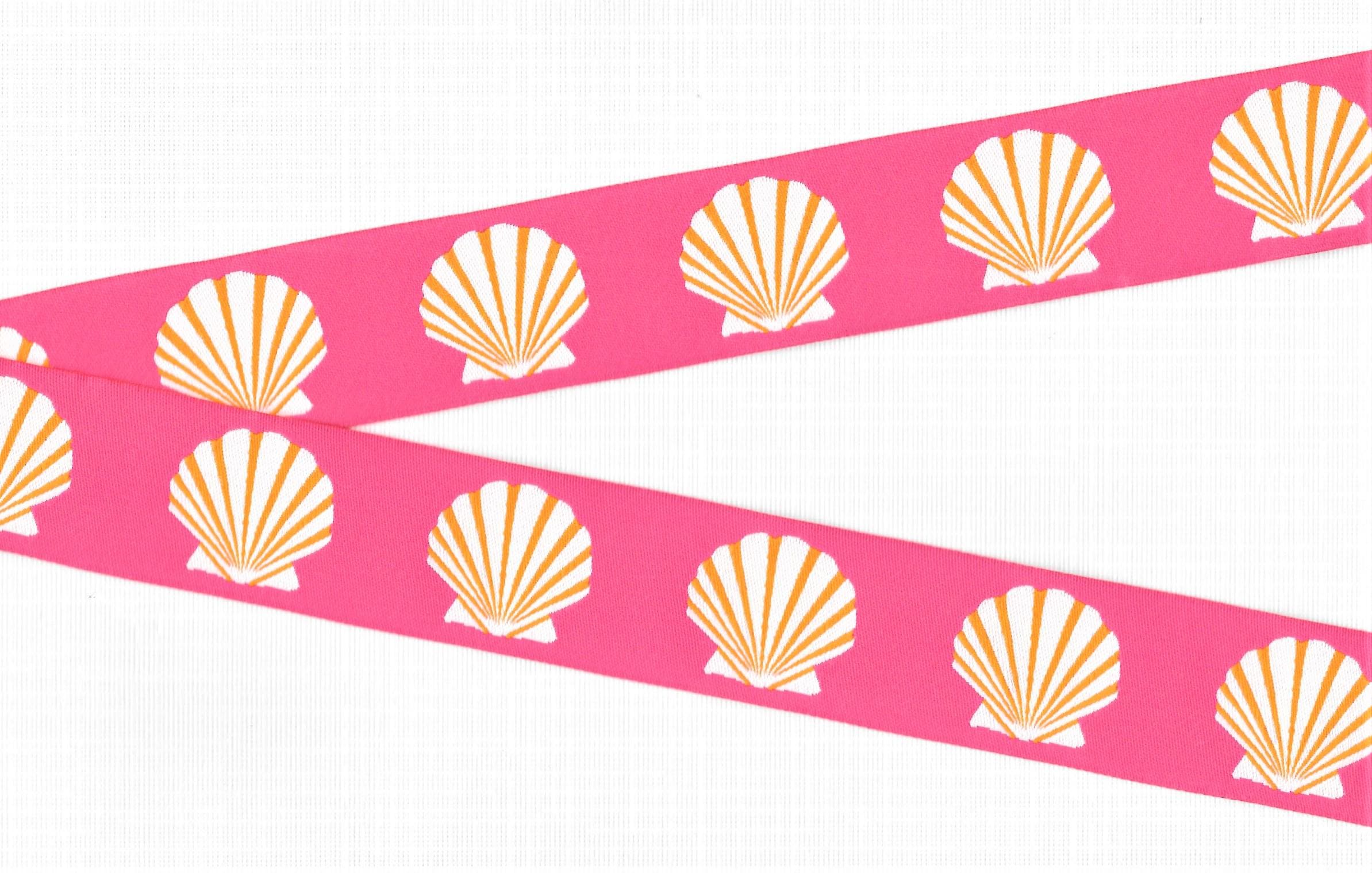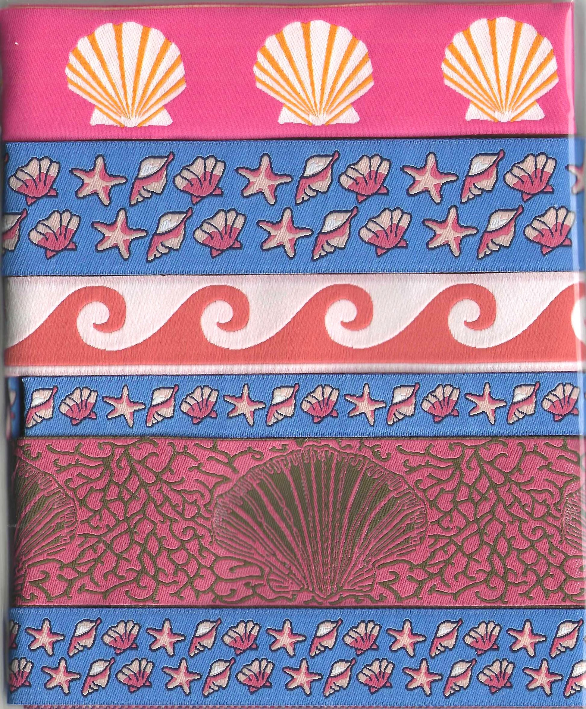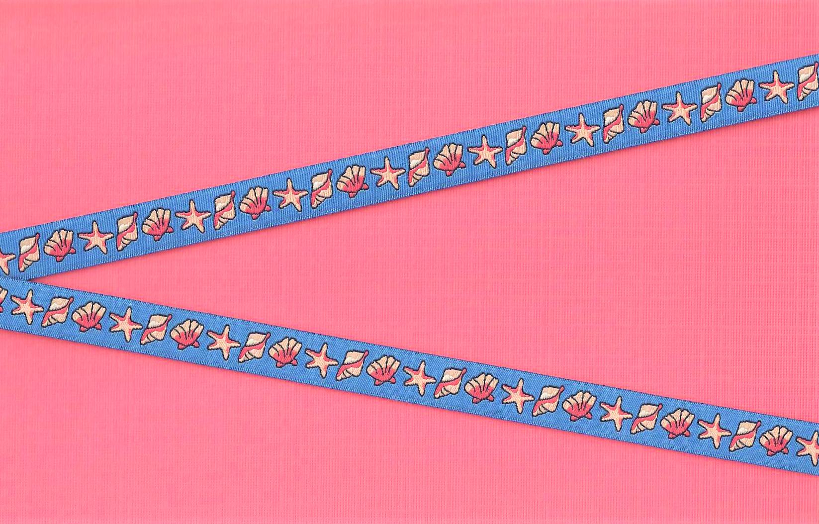 3/8" wide (13mm) Blue w/Coral Pink Seashells