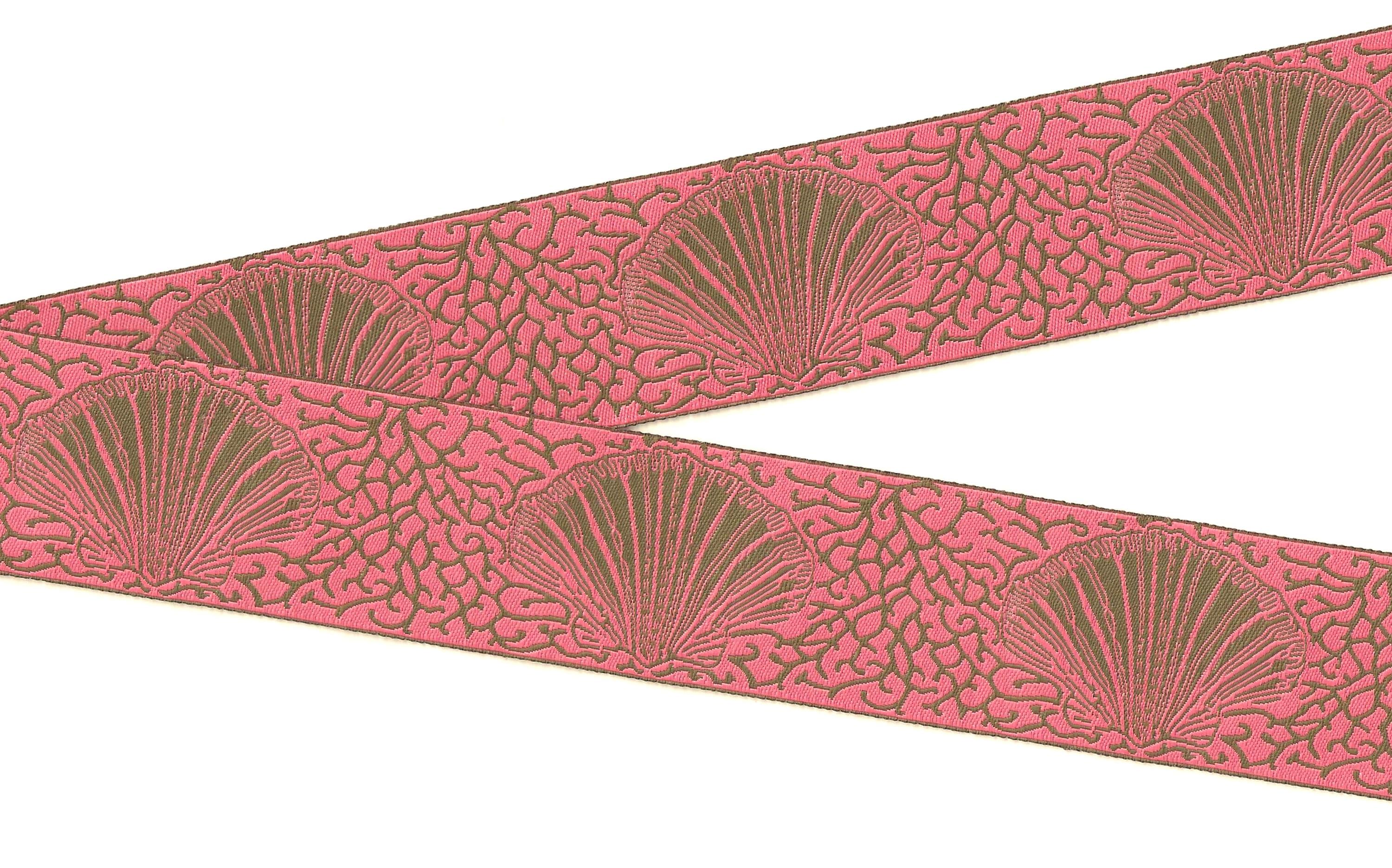 1-1/2" wide (38mm) REVERSIBLE Brown & Coral Pink Seashells VINTAGE