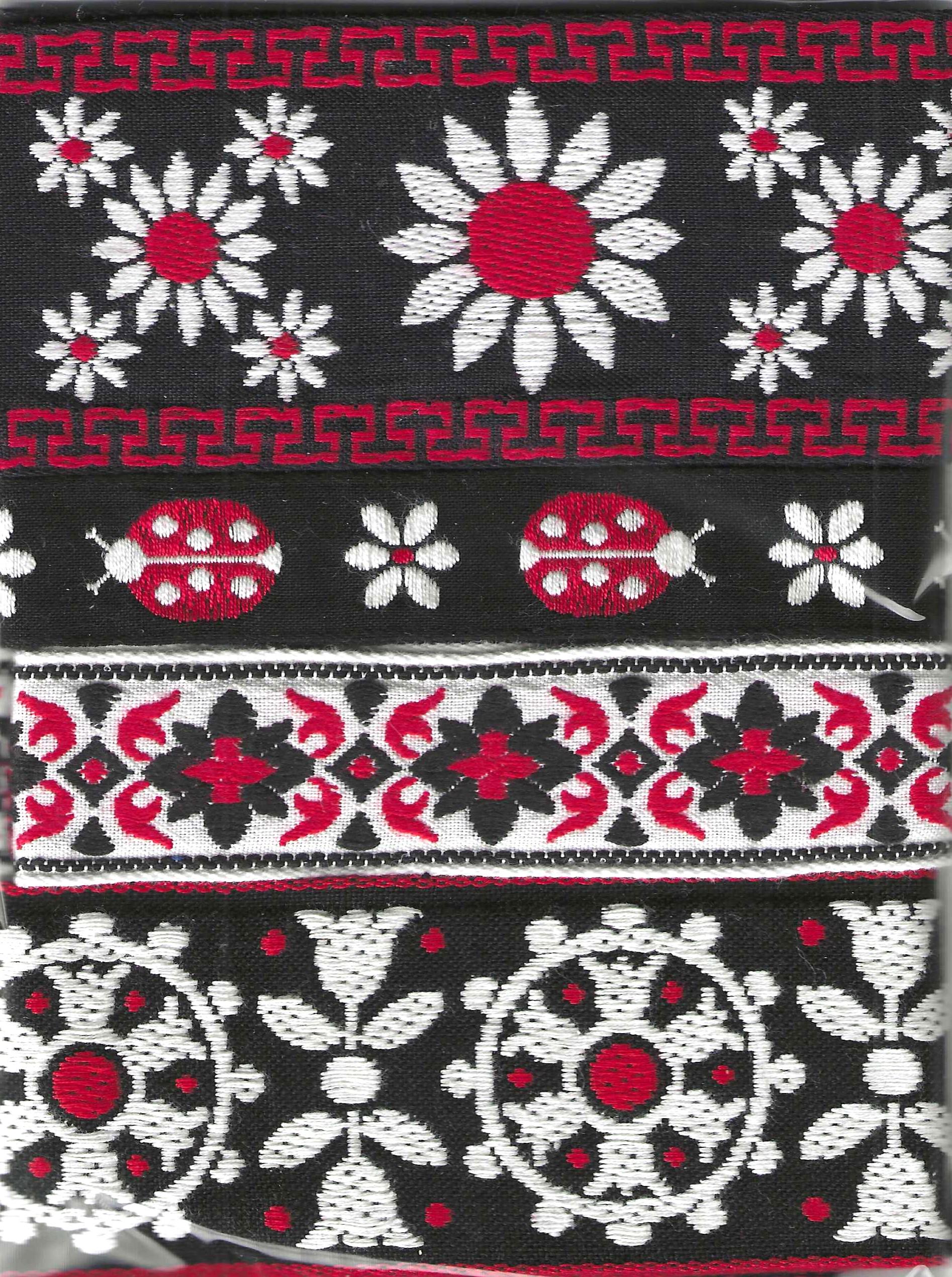 2" wide (50mm) VINTAGE Black, Red & White Folk Art Design