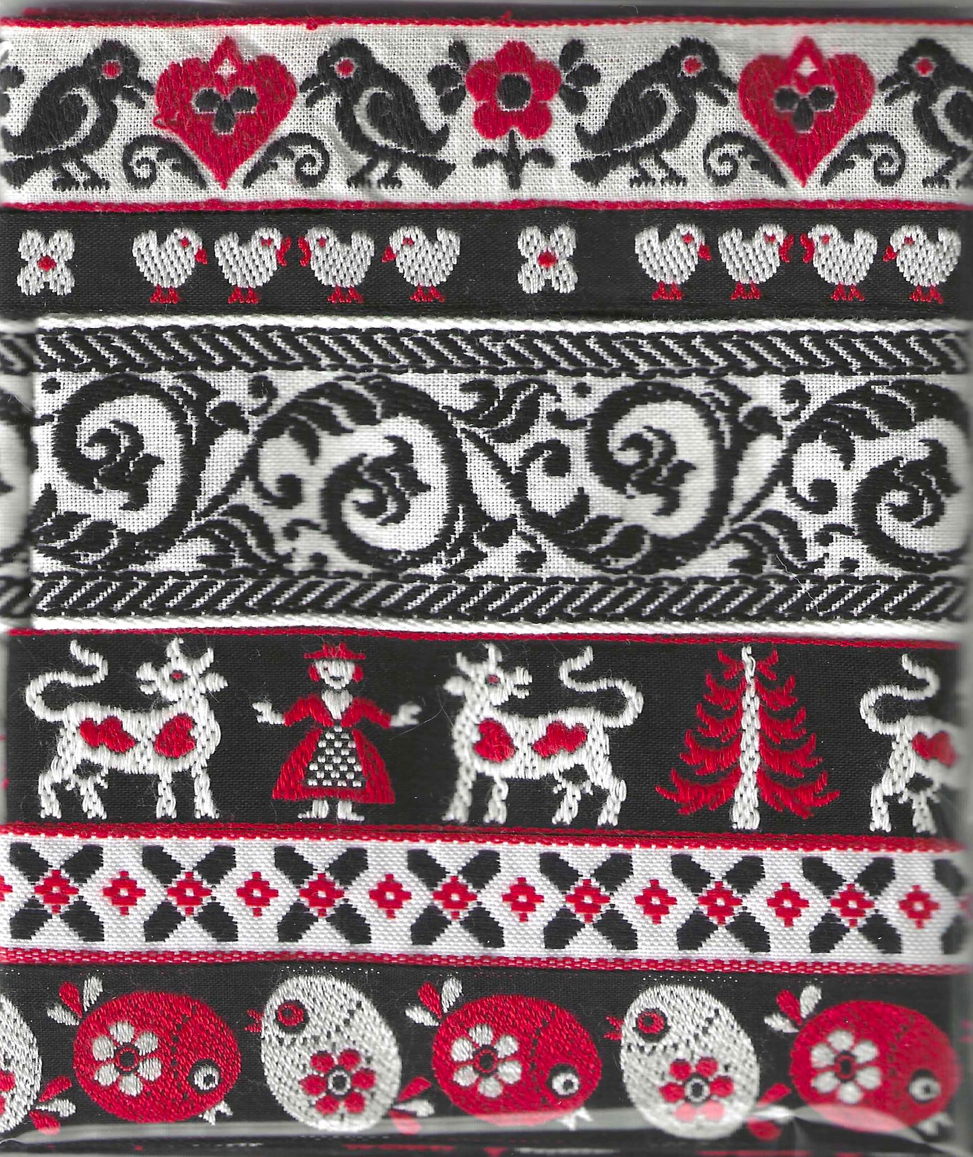 Jacquard Ribbon Trim - named for the man who invented the loom which this trim is woven on - Joseph Marie Jacquard (France 1732-1854). Jacquard trims nowadays are woven using many different materials including rayon, polyester, metallic, cotton, blends and on rare occasion silk. Unless otherwise noted these trims are all cold water machine wash/dry and are colorfast. Please use your own judgment