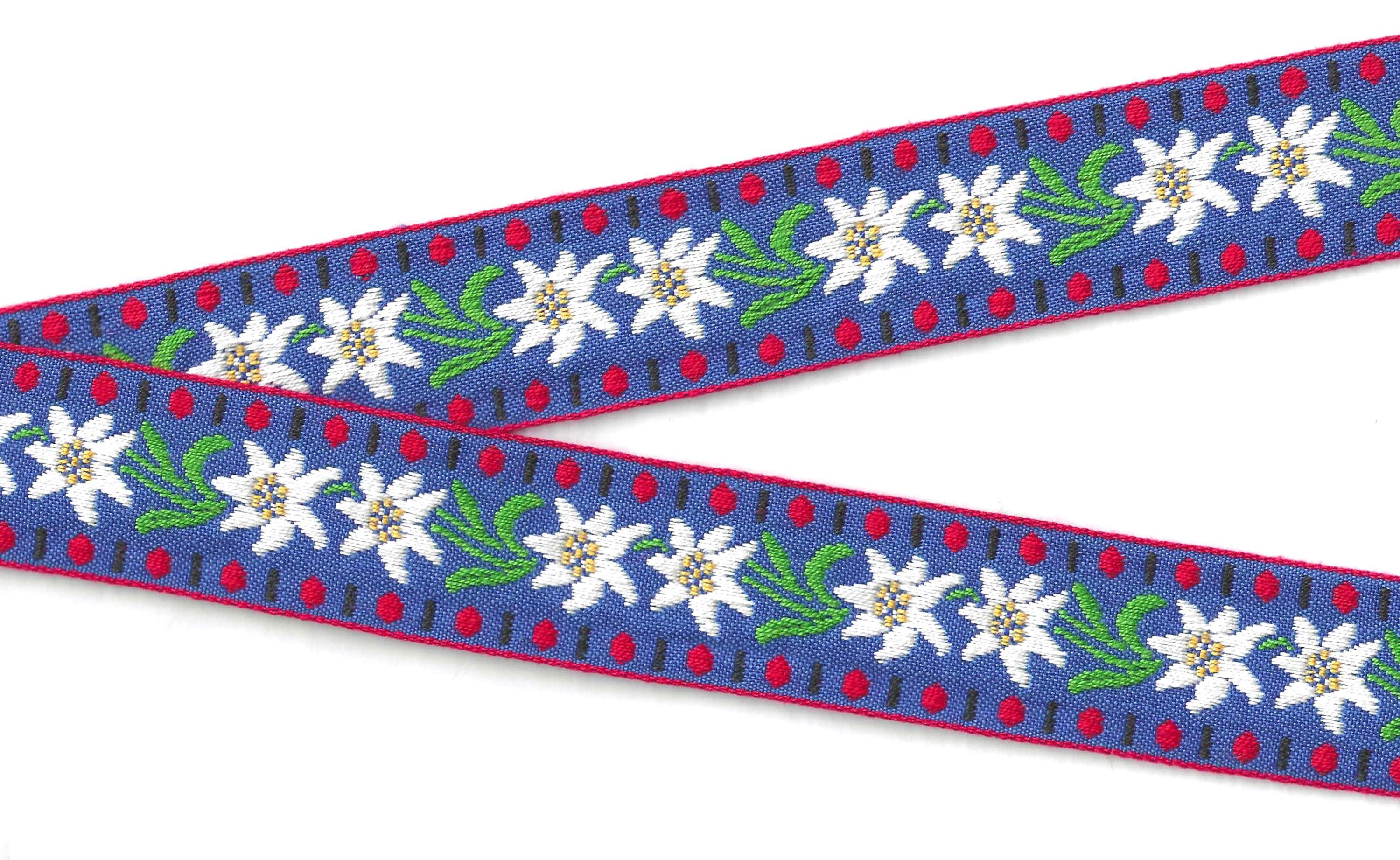 1-3/8" wide (34mm) Vintage, Blue w/White Edelweiss Flowers (From Germany)