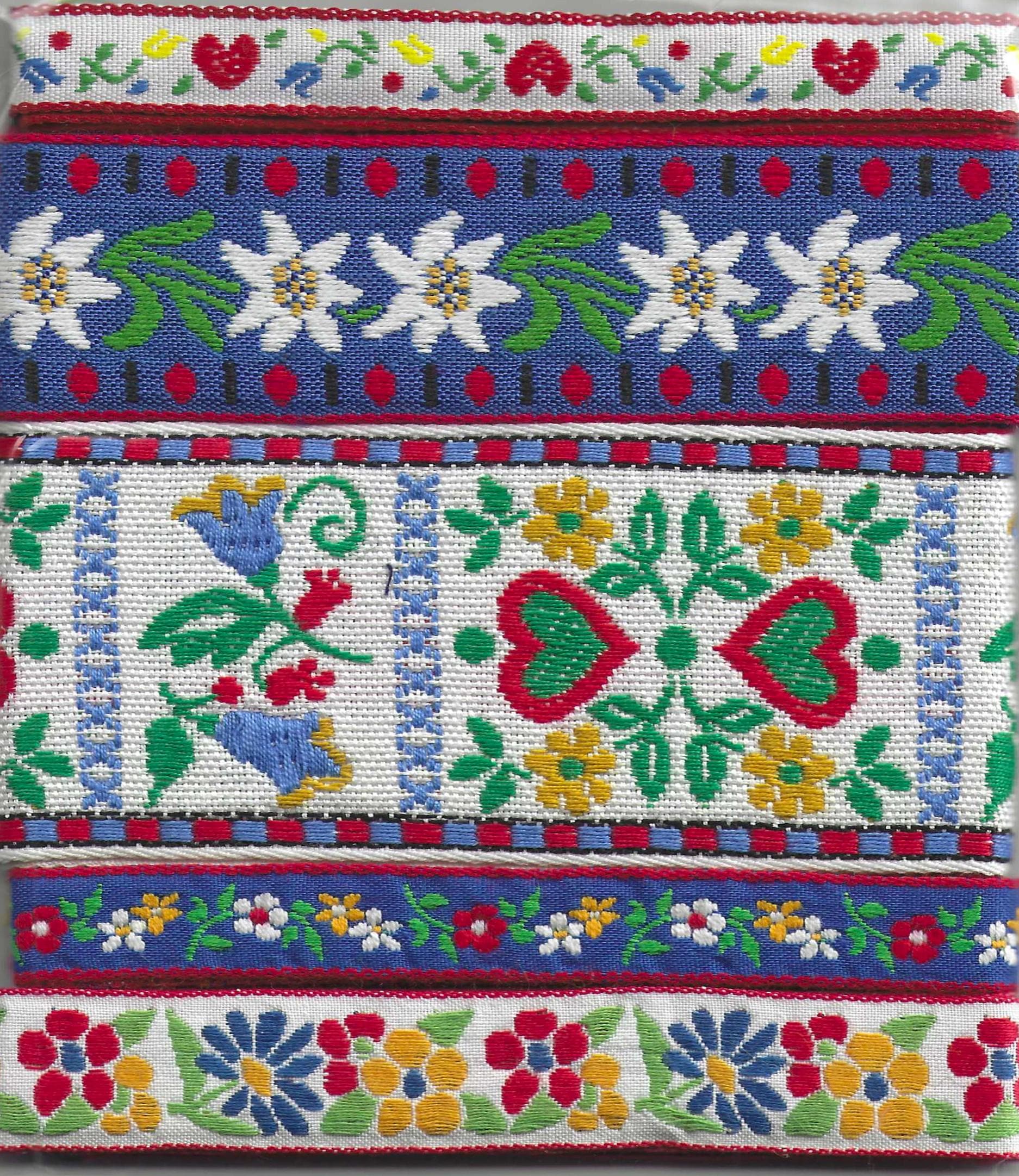 RIBBON PAK-124 Jacquard Ribbon Cotton Trim (5yds) 1yd ea of 5 Floral/Heart Designs