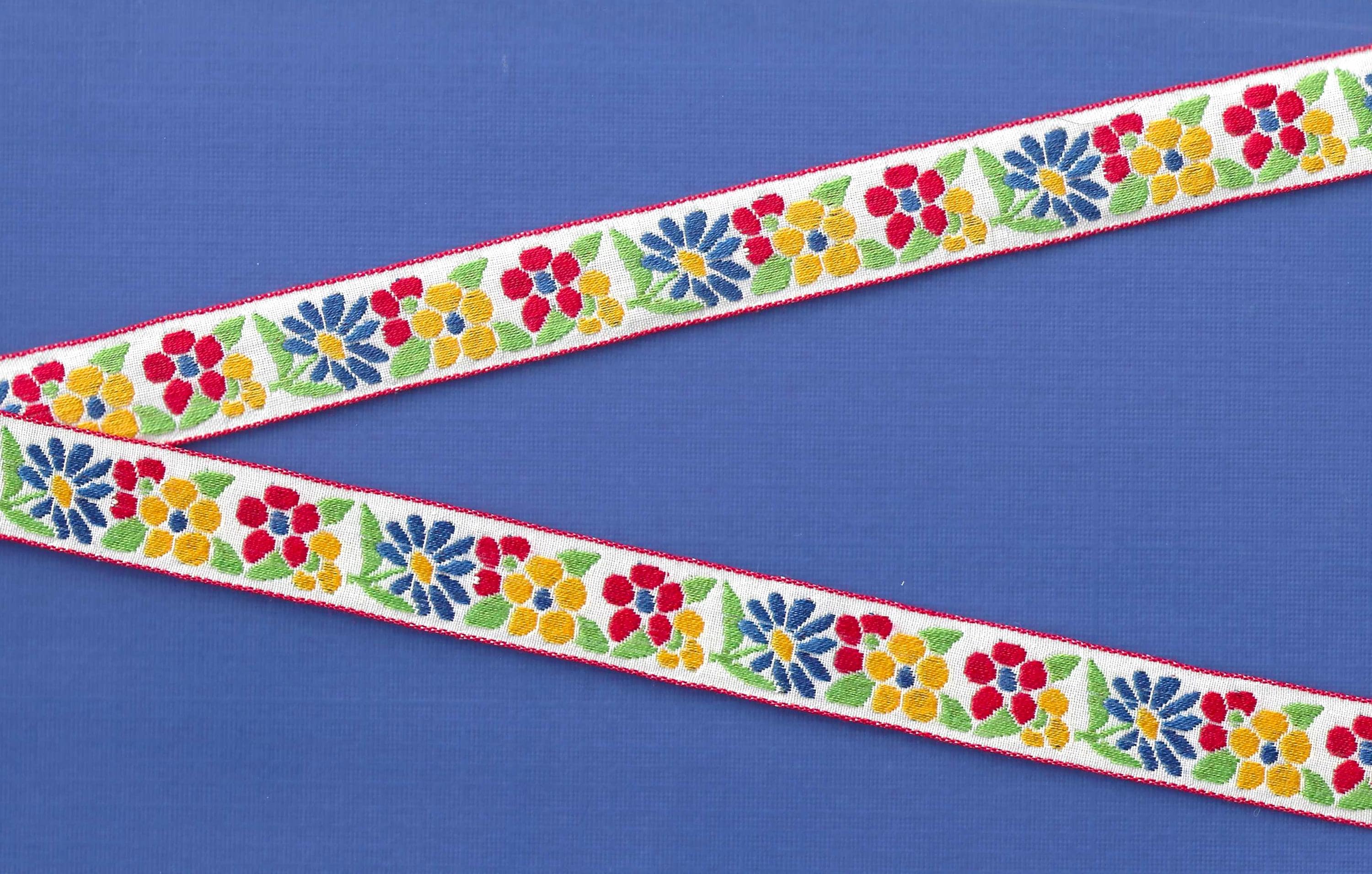 3/4" wide (20mm) White w/Red, Blue & Yellow Flowers