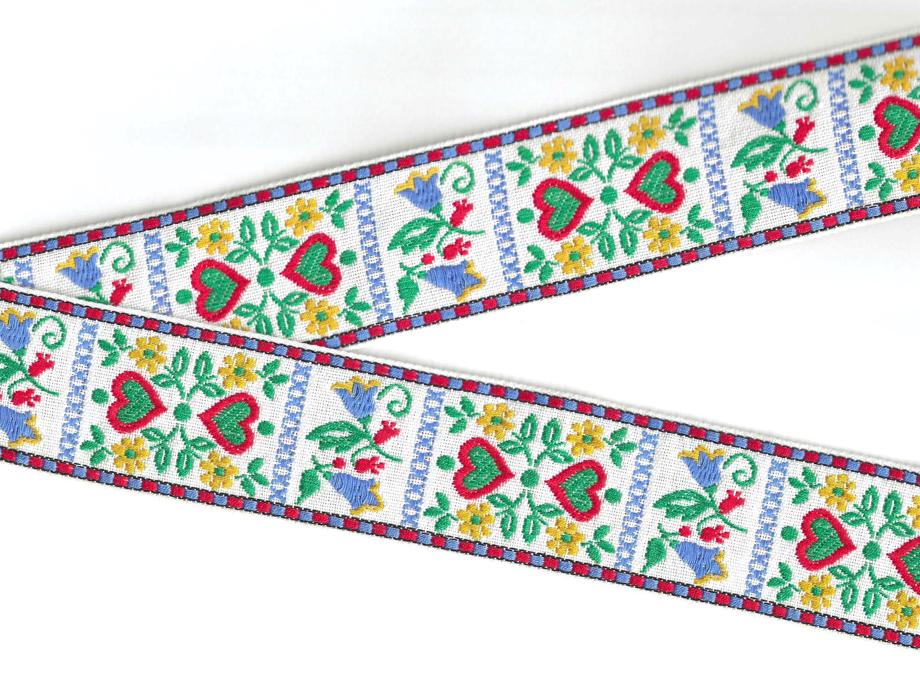 2" wide (50mm) White w/Red Hearts Nordic Design