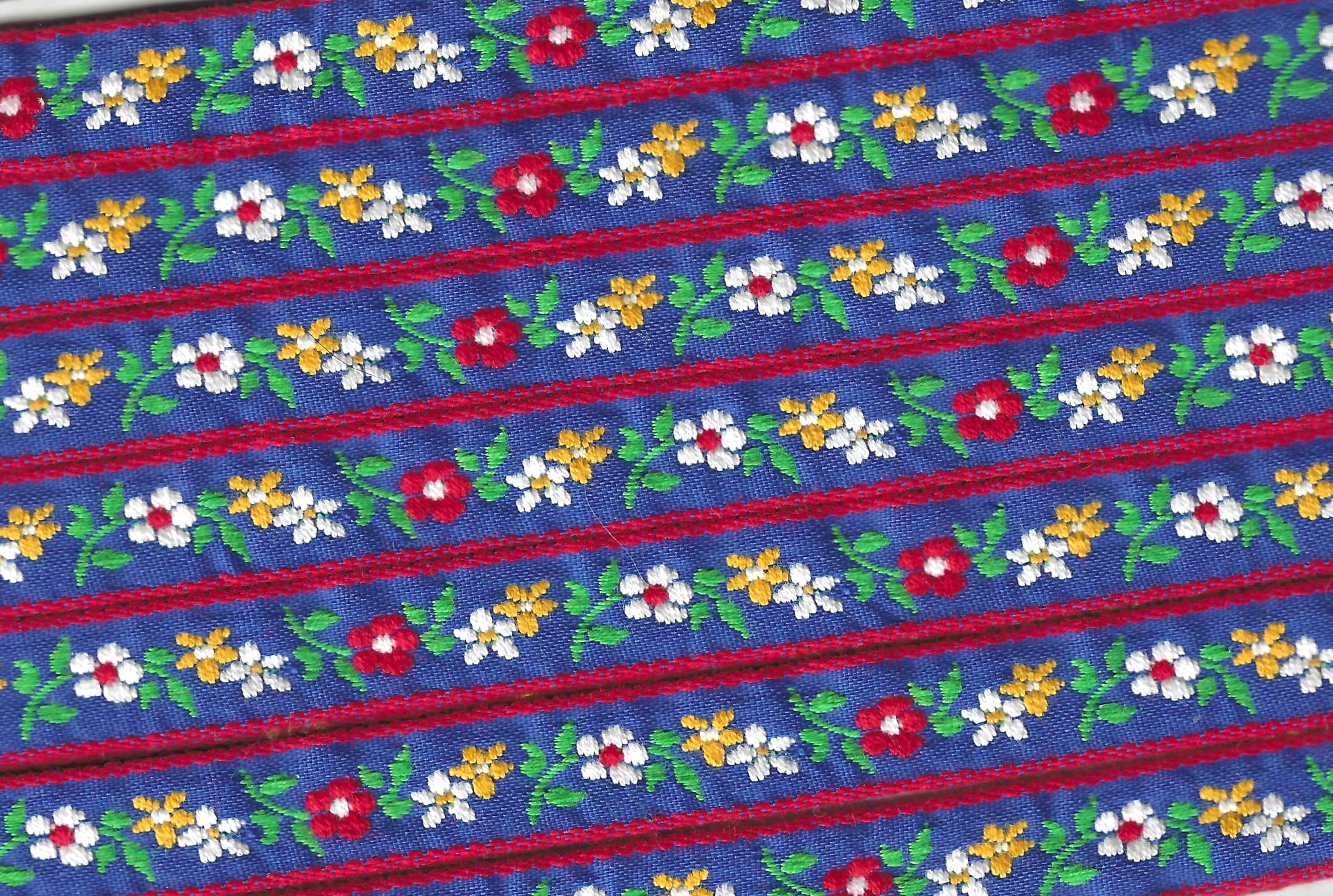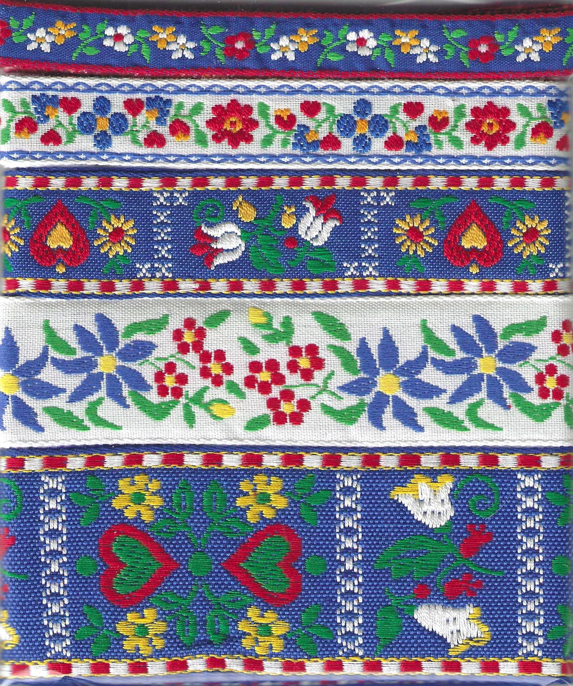 Jacquard Ribbon Trim - named for the man who invented the loom which this trim is woven on - Joseph Marie Jacquard (France 1732-1854). Jacquard trims nowadays are woven using many different materials including rayon, polyester, metallic, cotton, blends and on rare occasion silk. Unless otherwise noted these trims are all cold water machine wash/dry and are colorfast. Please use your own judgment.
