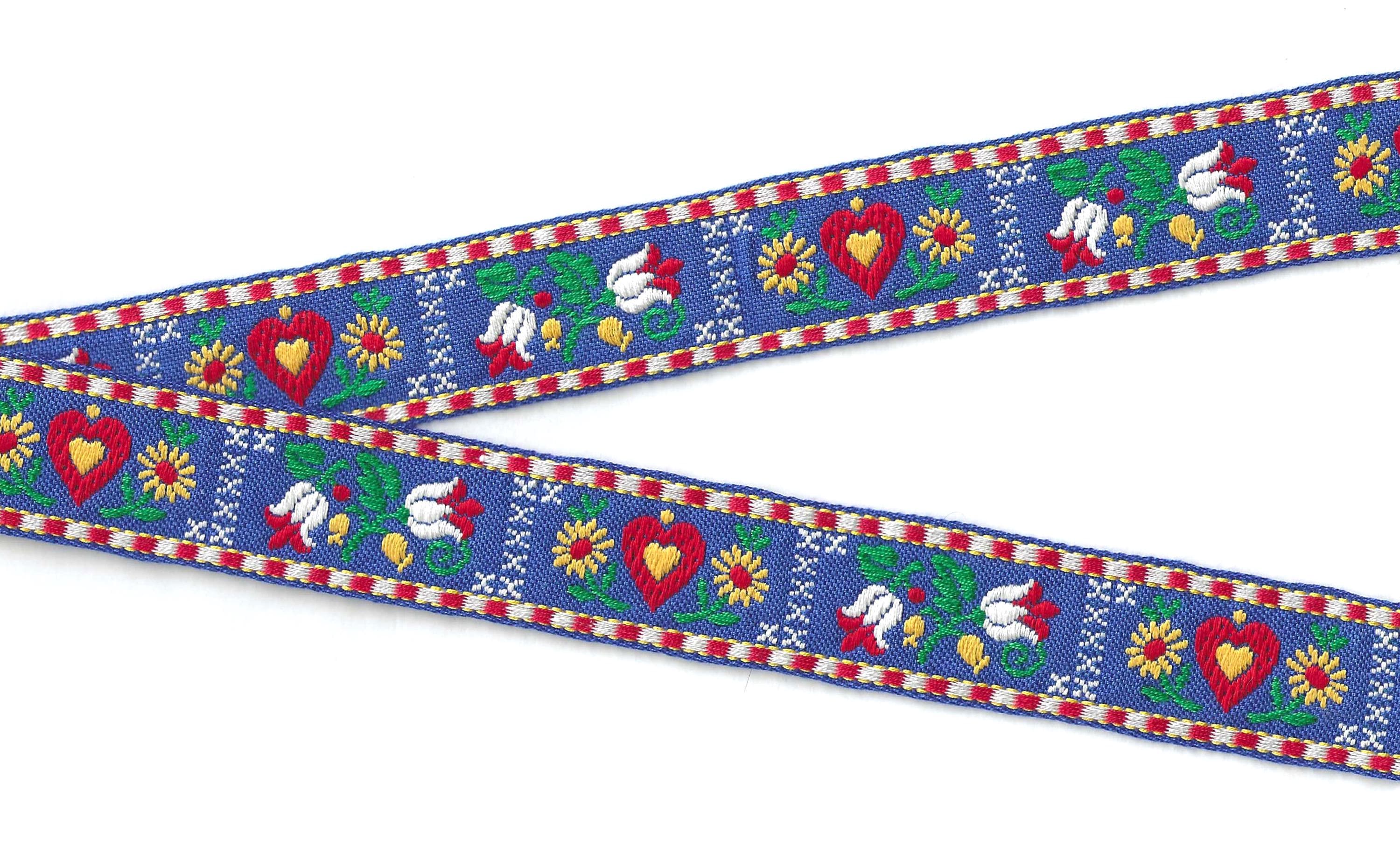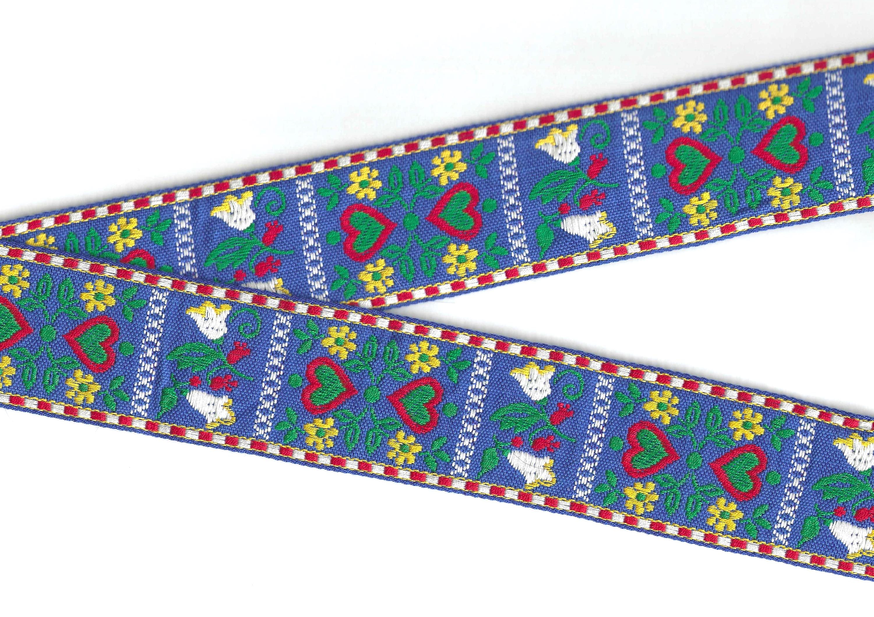 2" wide (50mm) Blue w/Red Hearts Nordic Design, Yellow Flowers