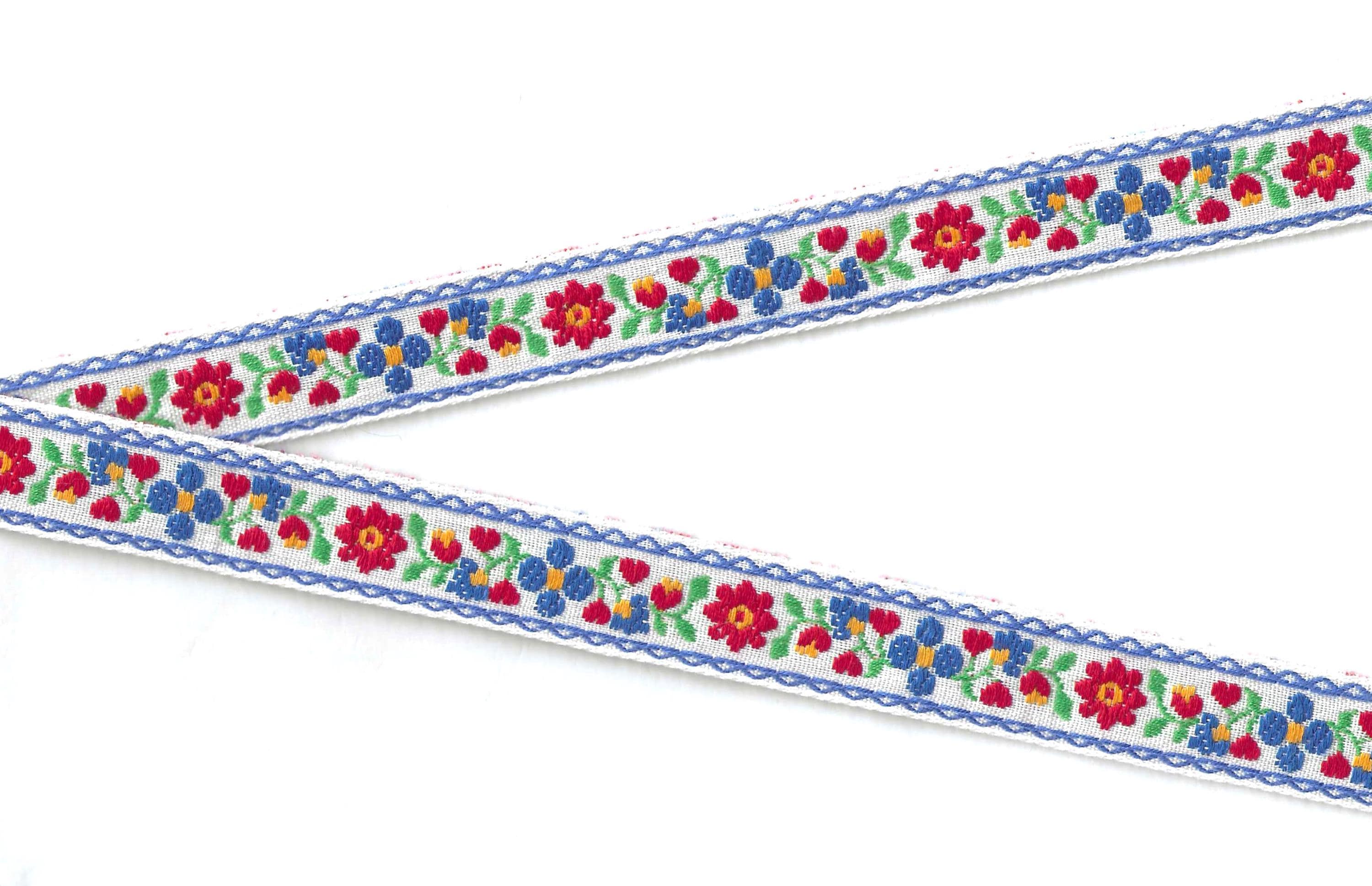 3/4" wide, (20mm) White w/Red Flowers, Petite Blue & Red Flowers