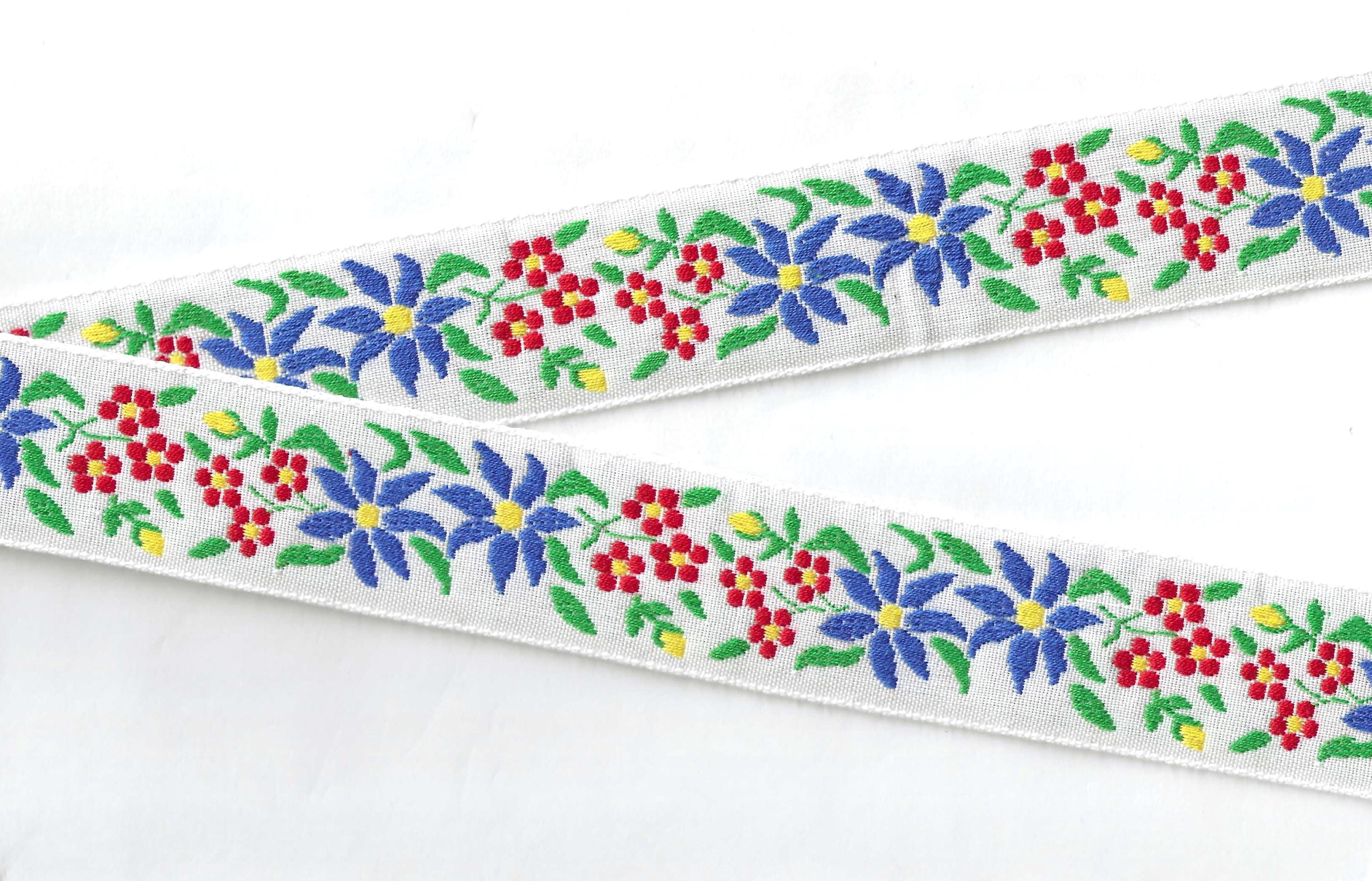 1-1/4" wide (32mm) White w/Blue Edelweiss Flowers