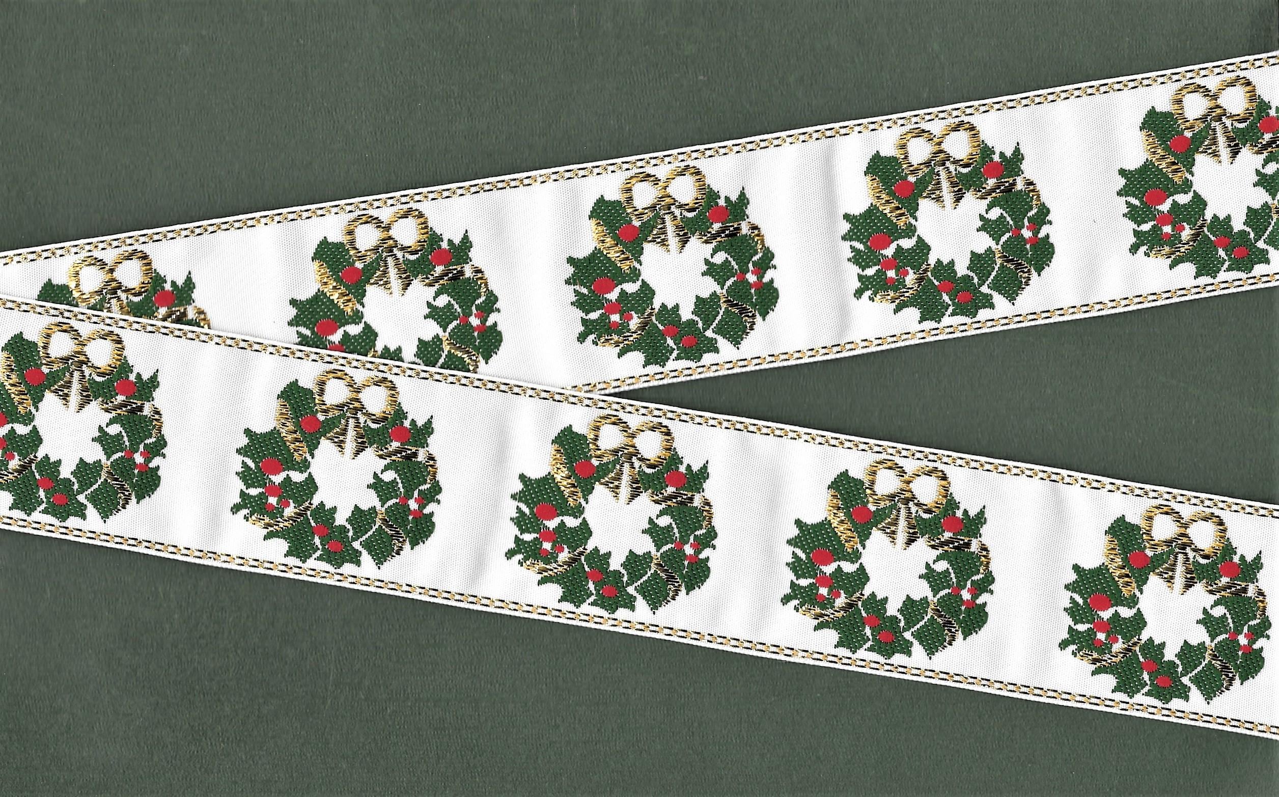 1-1/2" wide (38mm) White w/Wreaths & Metallic Gold Accents