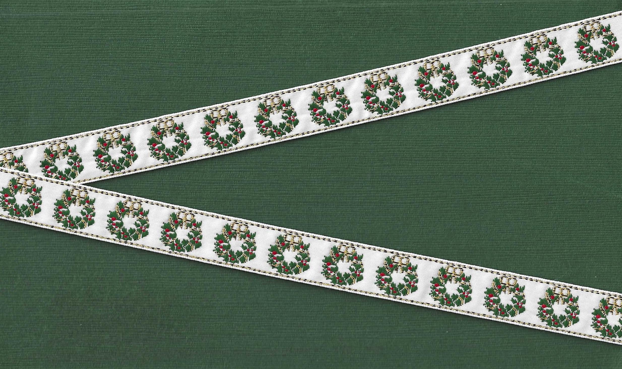 5/8" wide (16mm) White w/Wreaths & Metallic Gold Accents