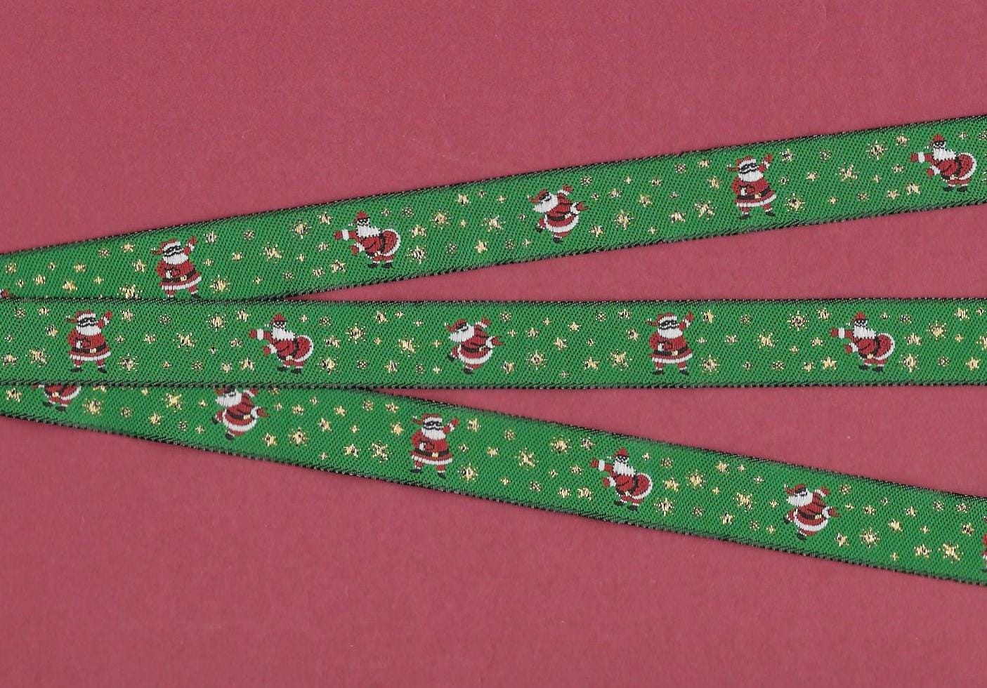 5/8" wide (16mm) Green w/Dancing Santa & Metallic Gold Accents