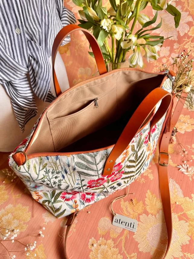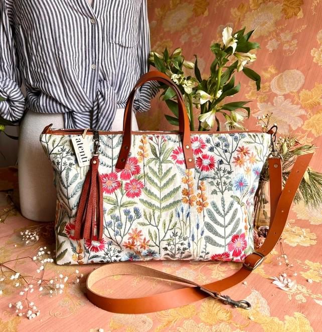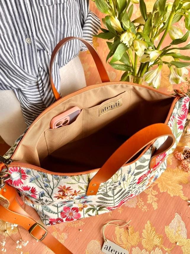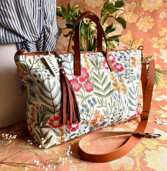 Gorgeous bags! I met this company at the Chicago H&H show in March 2024 and fell in love with their quality, fabrics and the beauty of their craftmanship. I'm pleased to be able to have them in my shop. Stock photos used and encouraged by Atenti. Pattern layout in the photos are the same as the actual bag you are buying.