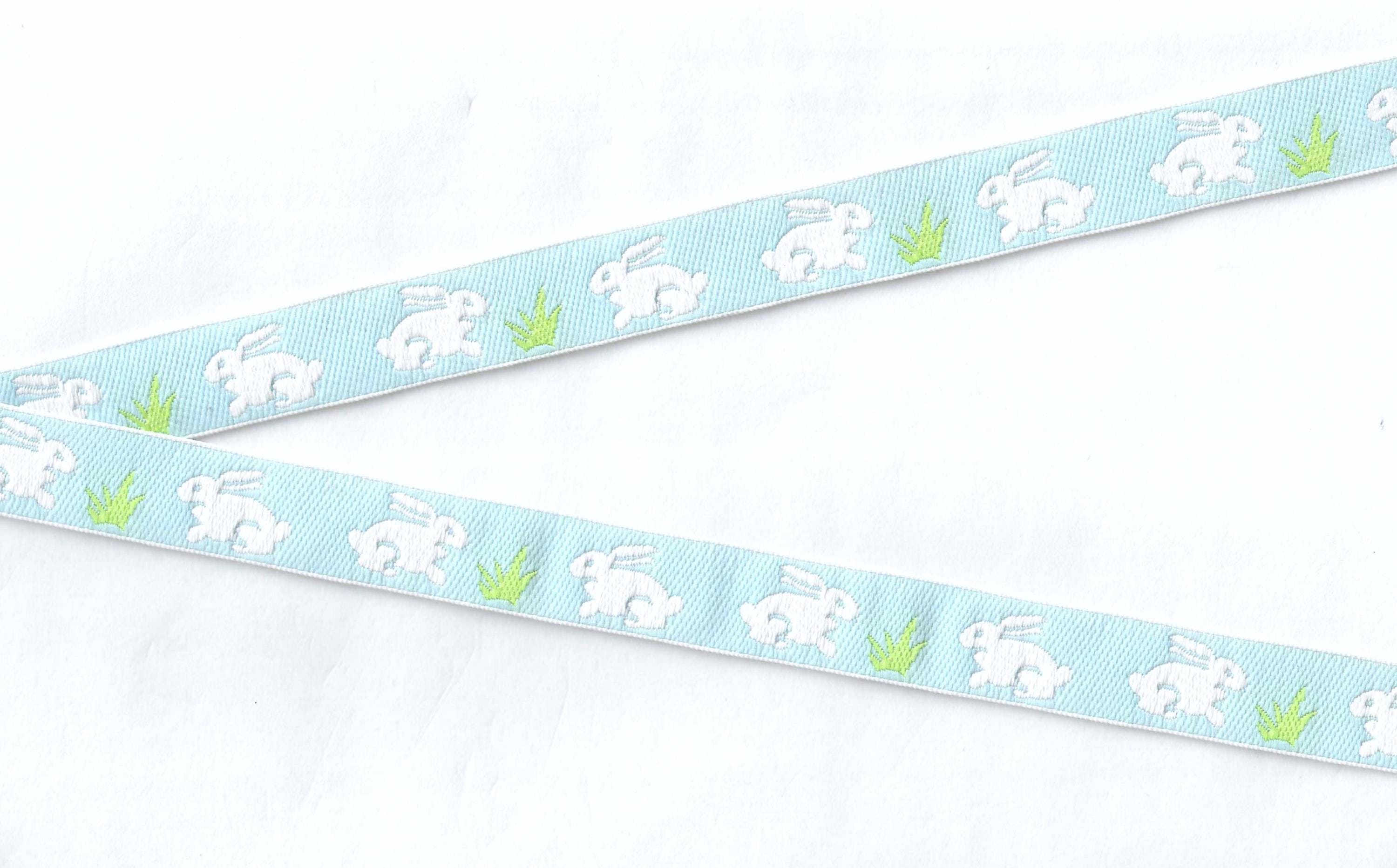 ANIMALS/Farm C-02-C Jacquard Ribbon Poly Trim 5/8" wide (16mm) Easter, Blue w/White Rabbits