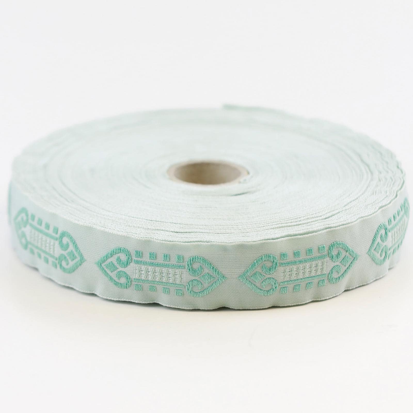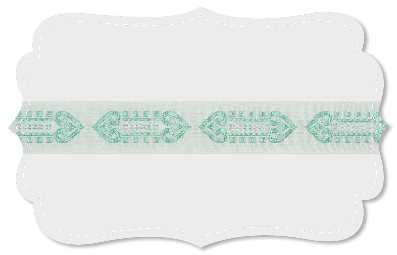 KAFKA D-14/24 Jacquard Ribbon Organic Cotton Trim 13/16" wide (20mm) Aqua w/"Double Hearts"