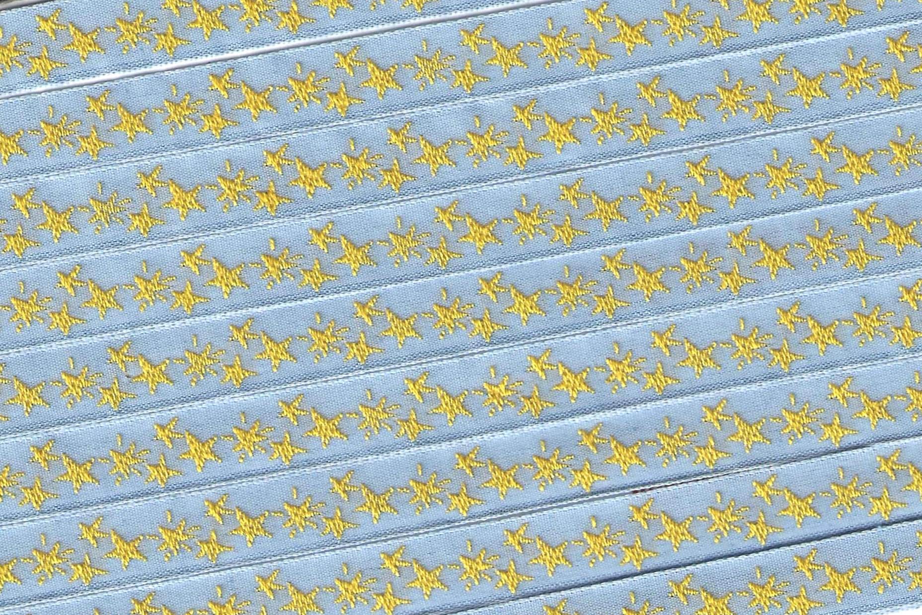 KAFKA A-15/11 Jacquard Ribbon Organic Cotton Trim 7/16" wide (10mm) Blue w/Yellow Stars