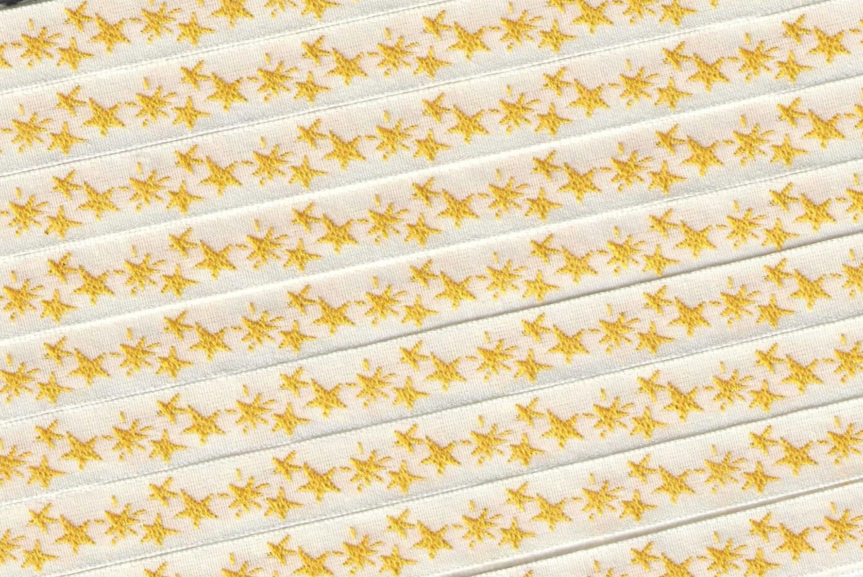 KAFKA A-15/10 Jacquard Ribbon Organic Cotton Trim 7/16" wide (10mm) Ivory w/Yellow Stars