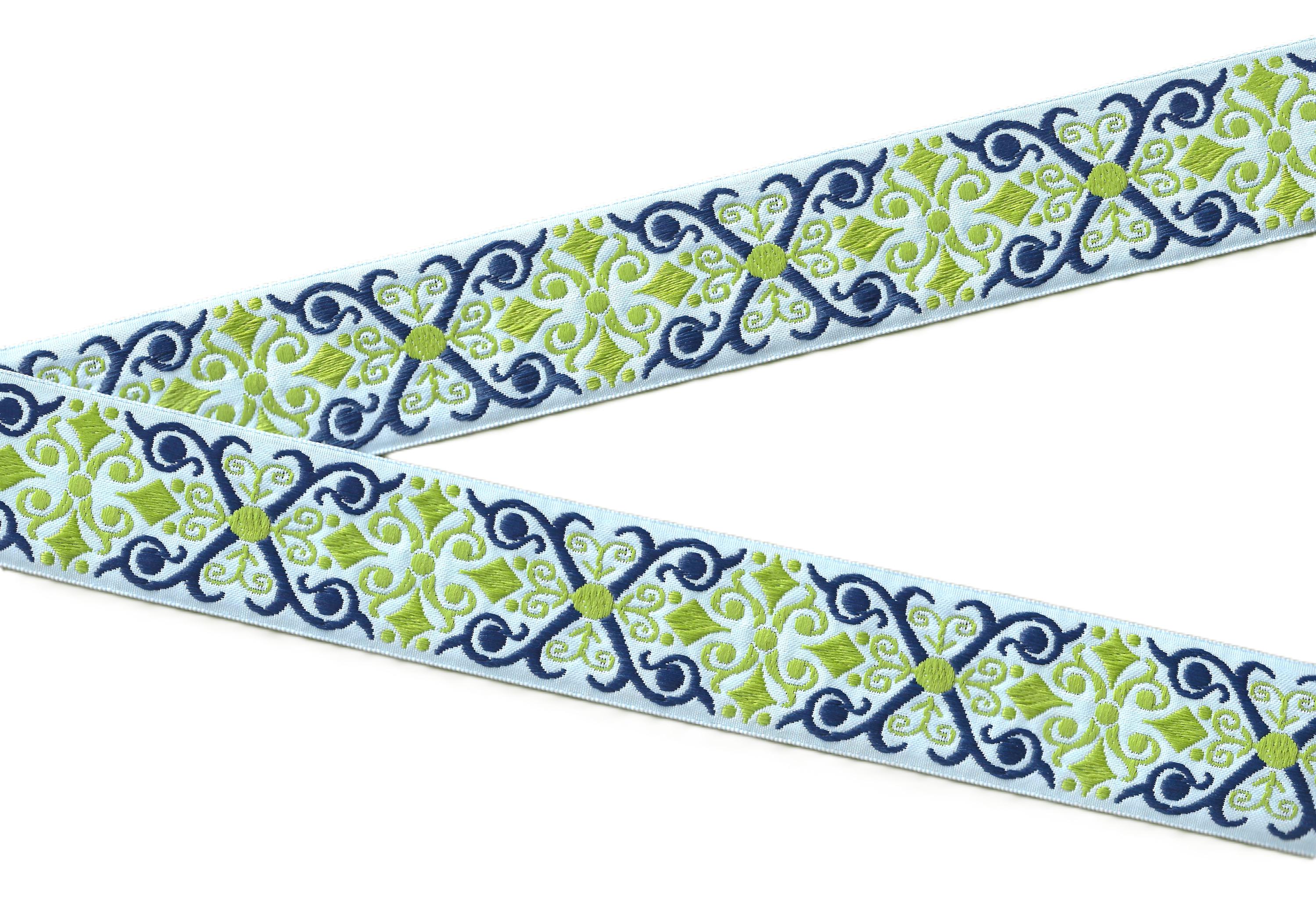 Jacquard Ribbon Trim - named for the man who invented the loom on which this trim is made - Joseph Marie Jacquard (France 1732-1854). Jacquard trims nowadays are woven using many different materials including rayon, polyester, metallic, cotton, blends and on rare occasion silk. Unless otherwise noted these trims are all cold water machine wash/dry and are colorfast. Please use your own judgment.