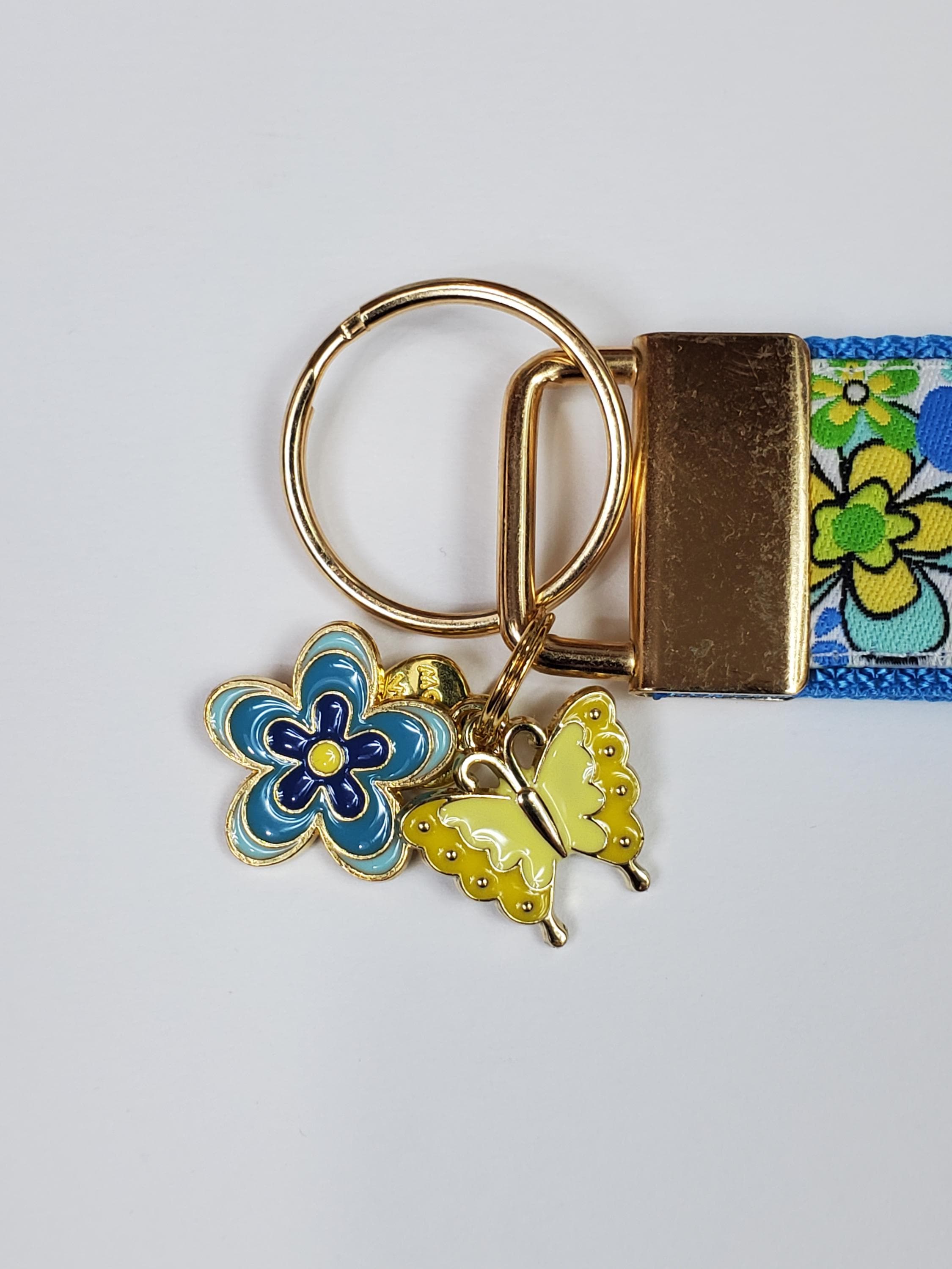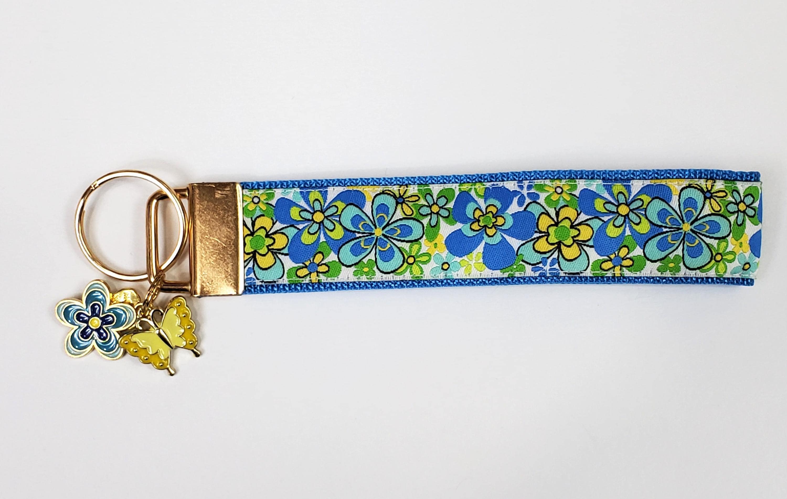 Handmade key fob with charms - my key fobs are made using jacquard woven ribbons and nylon web.