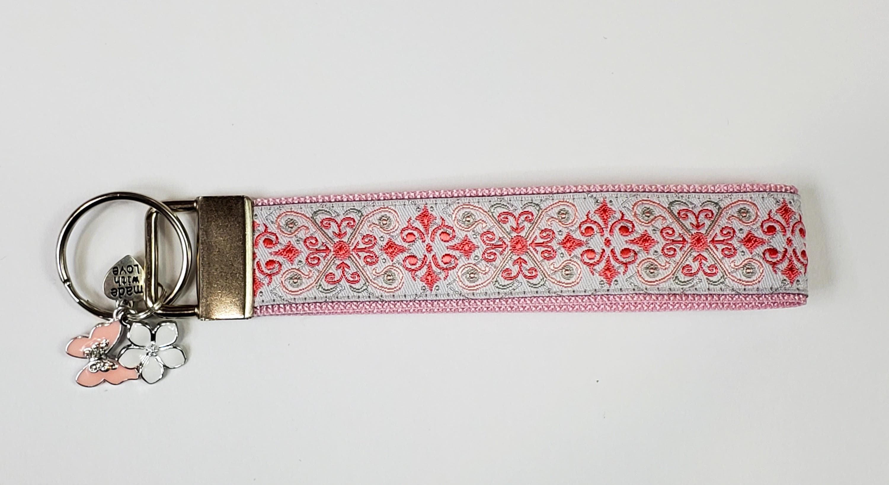 Handmade key fob with charms - my key fobs are made using jacquard woven ribbons and nylon web.