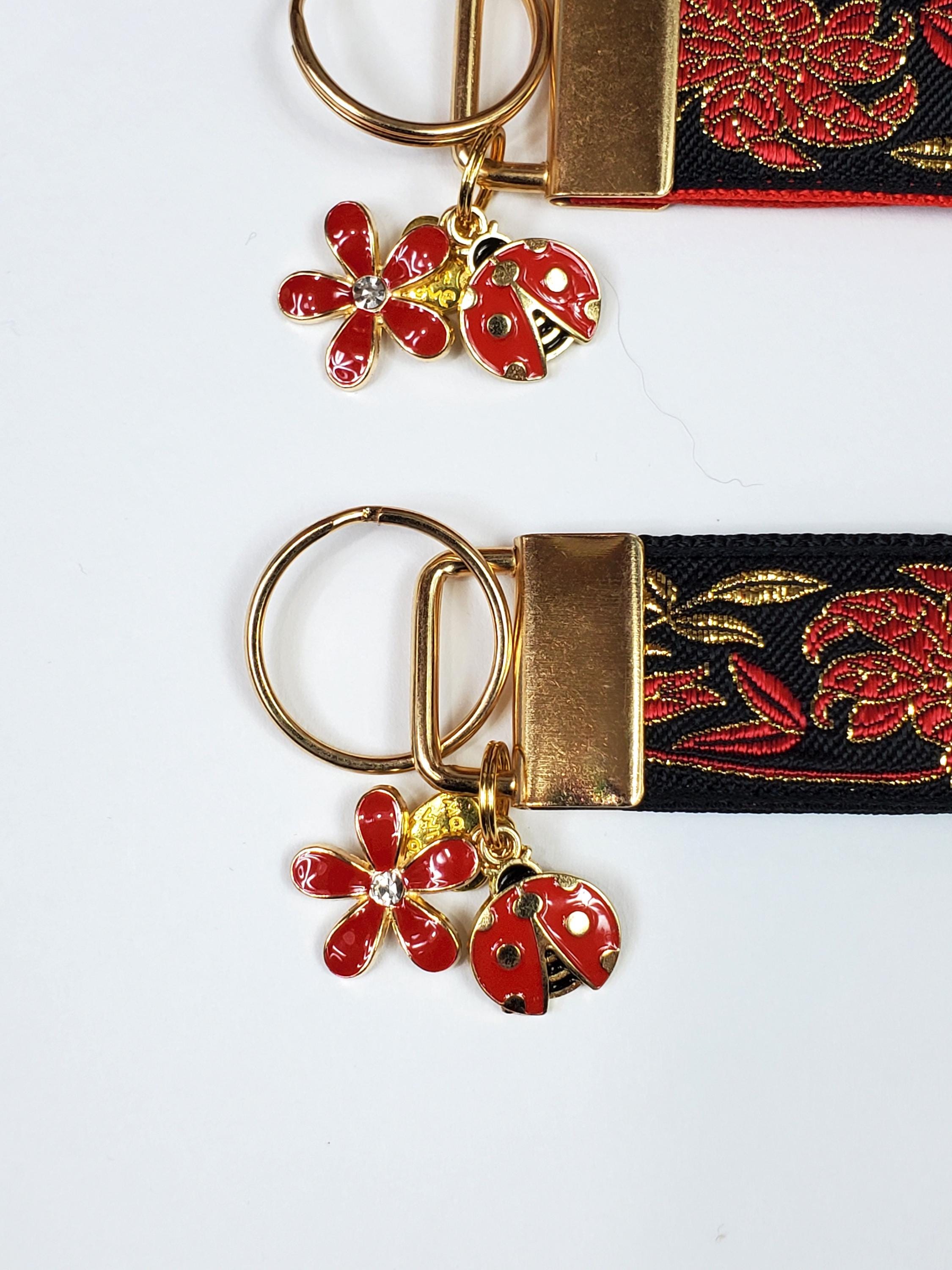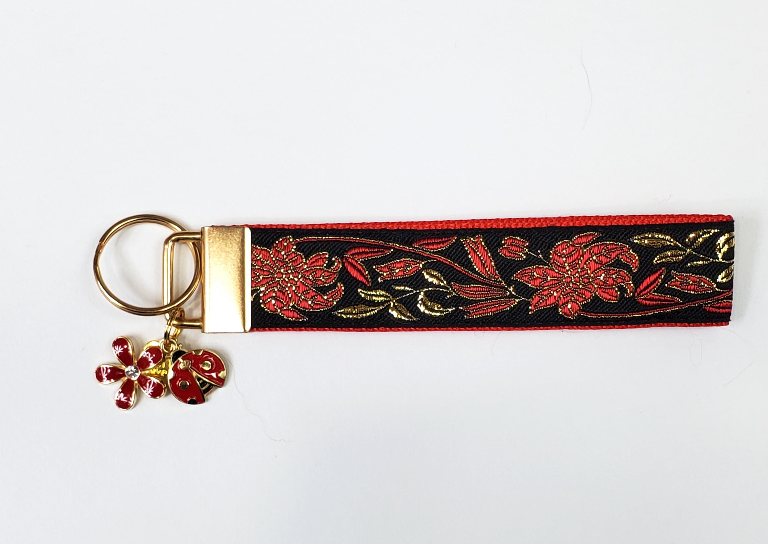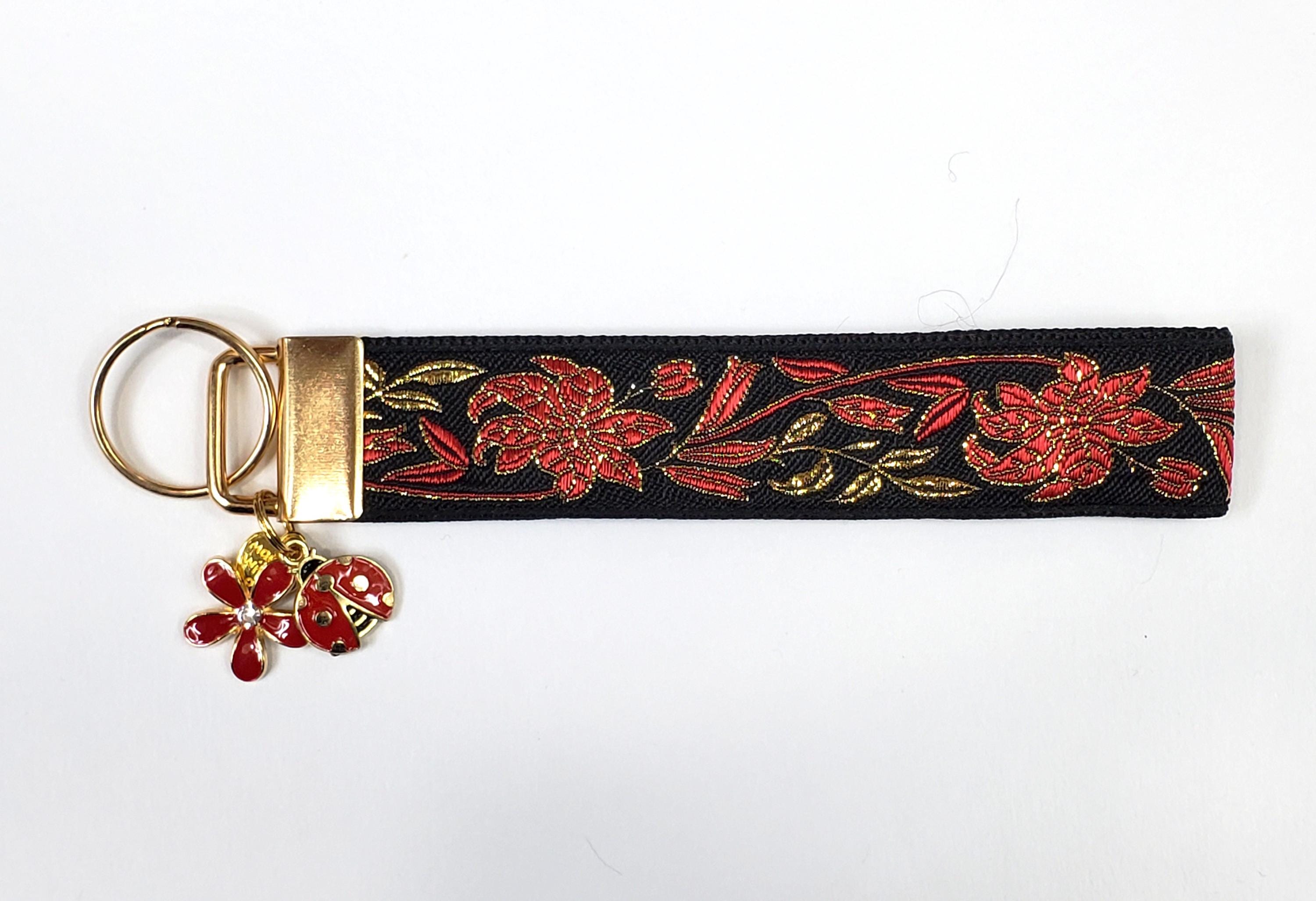 Handmade key fob with charms - my key fobs are made using jacquard woven ribbons and nylon web.