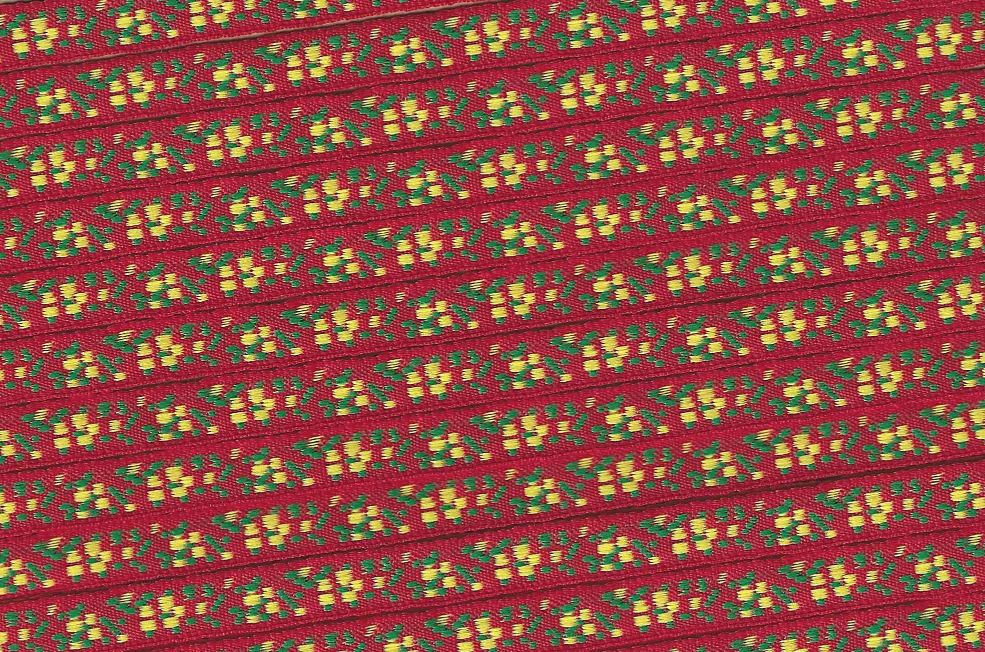 Jacquard Ribbon Trim - named for the man who invented the loom on which this trim is made - Joseph Marie Jacquard (France 1732-1854). Jacquard trims nowadays are woven using many different materials including rayon, polyester, metallic, cotton, blends and on rare occasion silk. Unless otherwise noted these trims are all cold water machine wash/dry and are colorfast. Please use your own judgment.