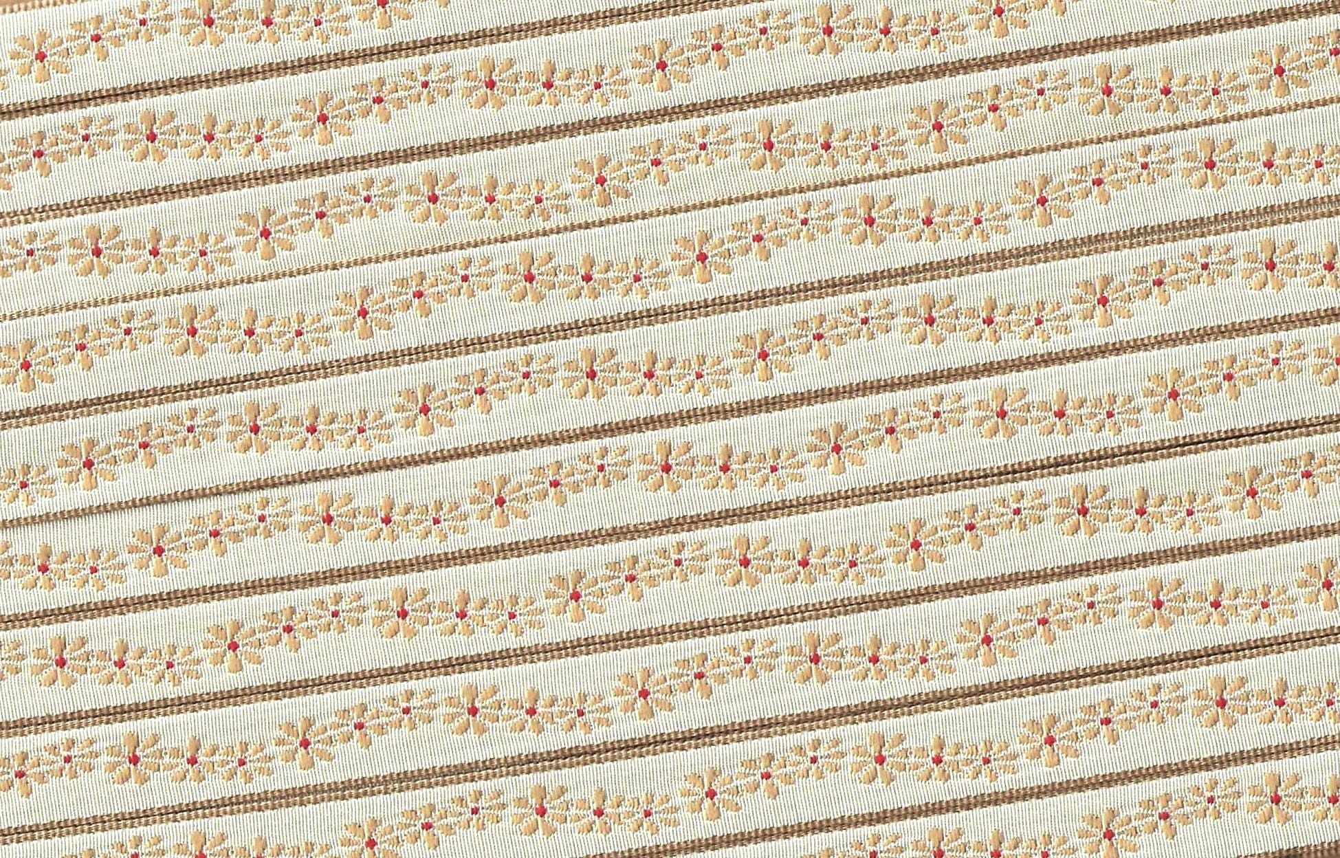 Jacquard Ribbon Trim - named for the man who invented the loom on which this trim is made - Joseph Marie Jacquard (France 1732-1854). Jacquard trims nowadays are woven using many different materials including rayon, polyester, metallic, cotton, blends and on rare occasion silk. Unless otherwise noted these trims are all cold water machine wash/dry and are colorfast. Please use your own judgment.