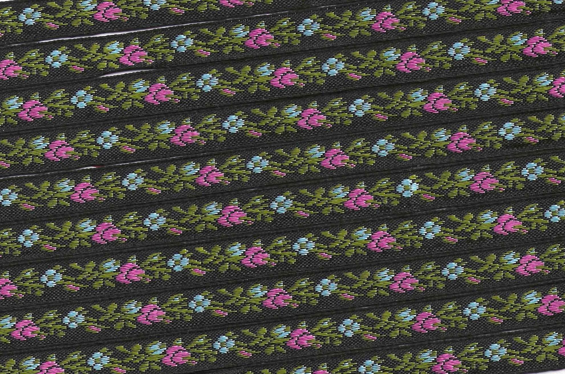 Jacquard Ribbon Trim - named for the man who invented the loom on which this trim is made - Joseph Marie Jacquard (France 1732-1854). Jacquard trims nowadays are woven using many different materials including rayon, polyester, metallic, cotton, blends and on rare occasion silk. Unless otherwise noted these trims are all cold water machine wash/dry and are colorfast. Please use your own judgment.